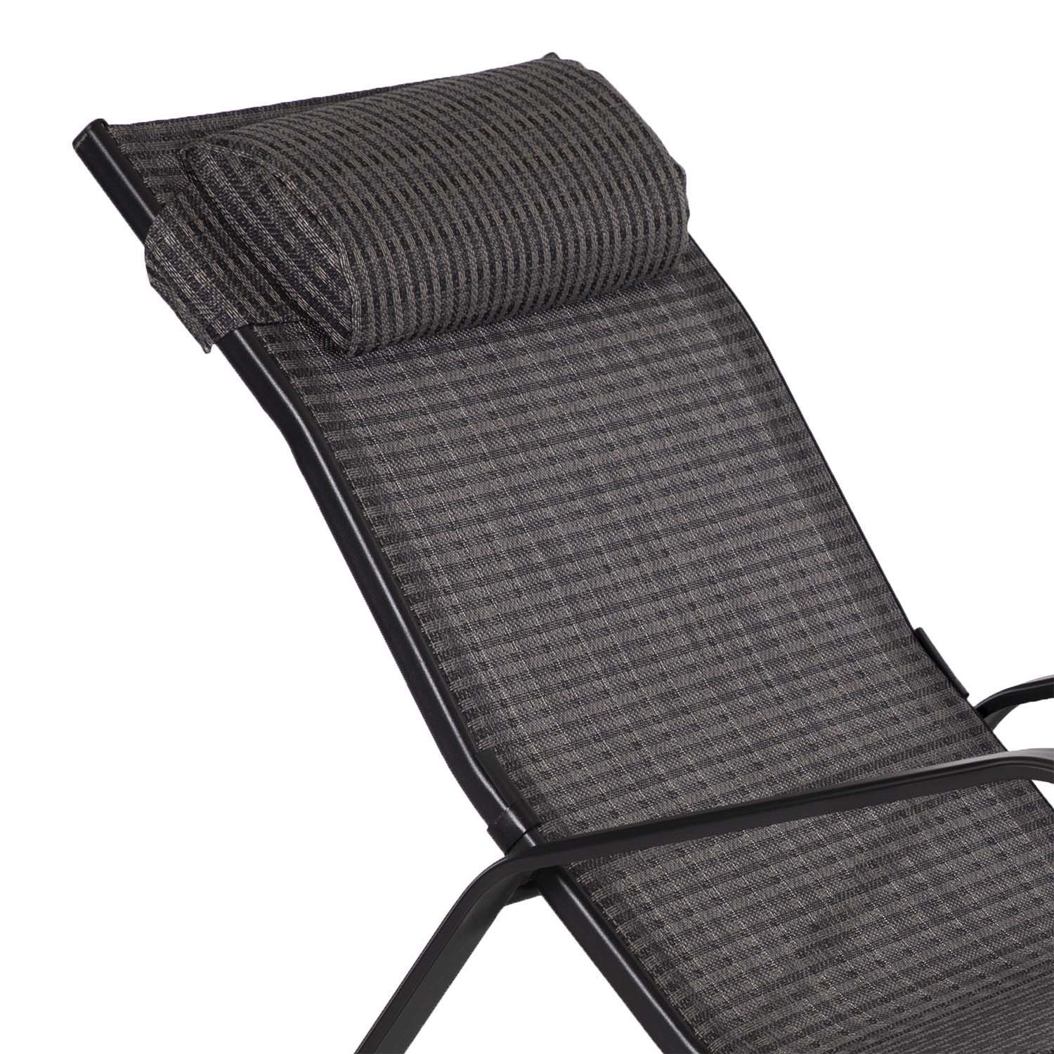 Kiik-lamamistool BOSTON hall. Tooli textilene iste laseb hästi õhku läbi, kuivab kiiresti ja seda on lihtne puhastada. Tooli raam ja jalad on valmistatud terasest ja viimistletud musta pulbervärviga. Tooli üldmõõdud on 70x128xH85cm. Kaalupiirang on 100kg.