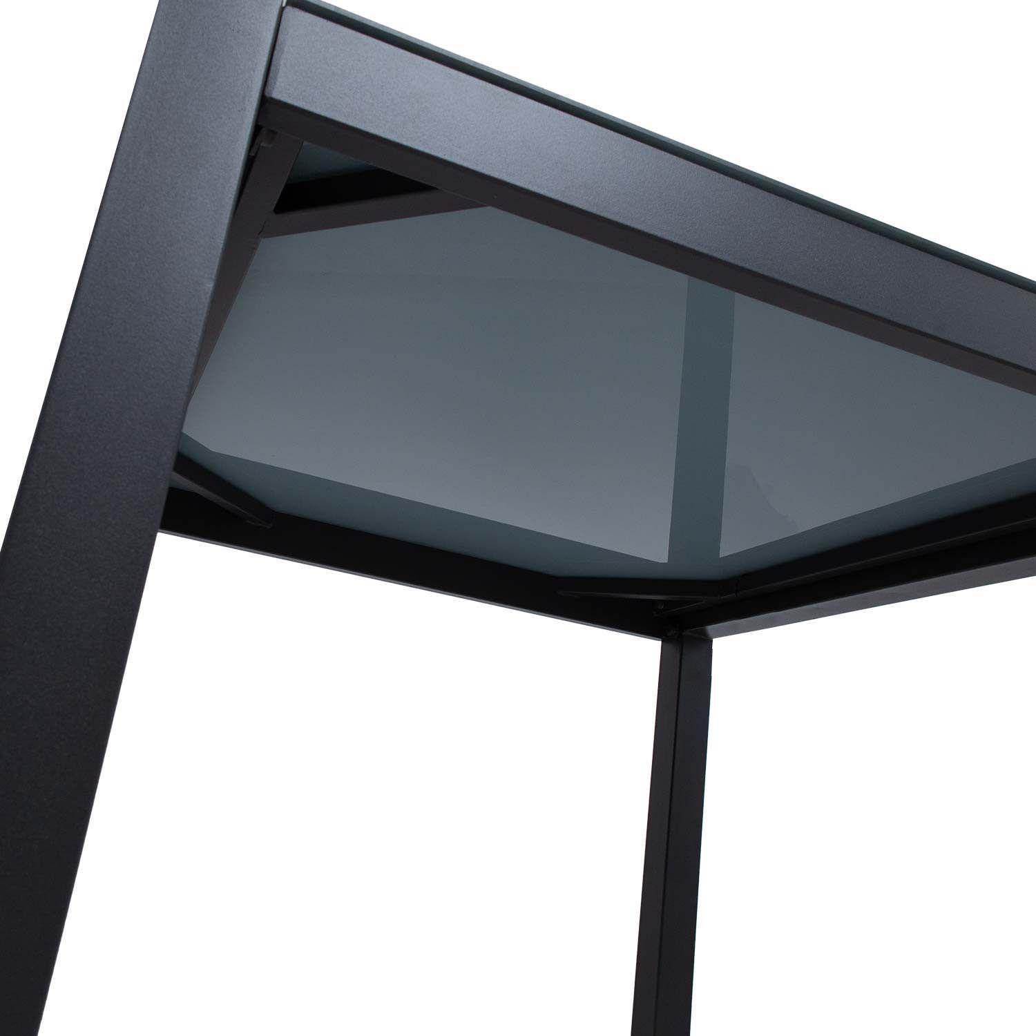 Laud DELGADO 80x80xH72cm, hall. Lauaplaat: 5mm hall karastatud klaas. Laua jalad ja raam on valmistatud terasest ja viimistletud halli pulbervärviga.