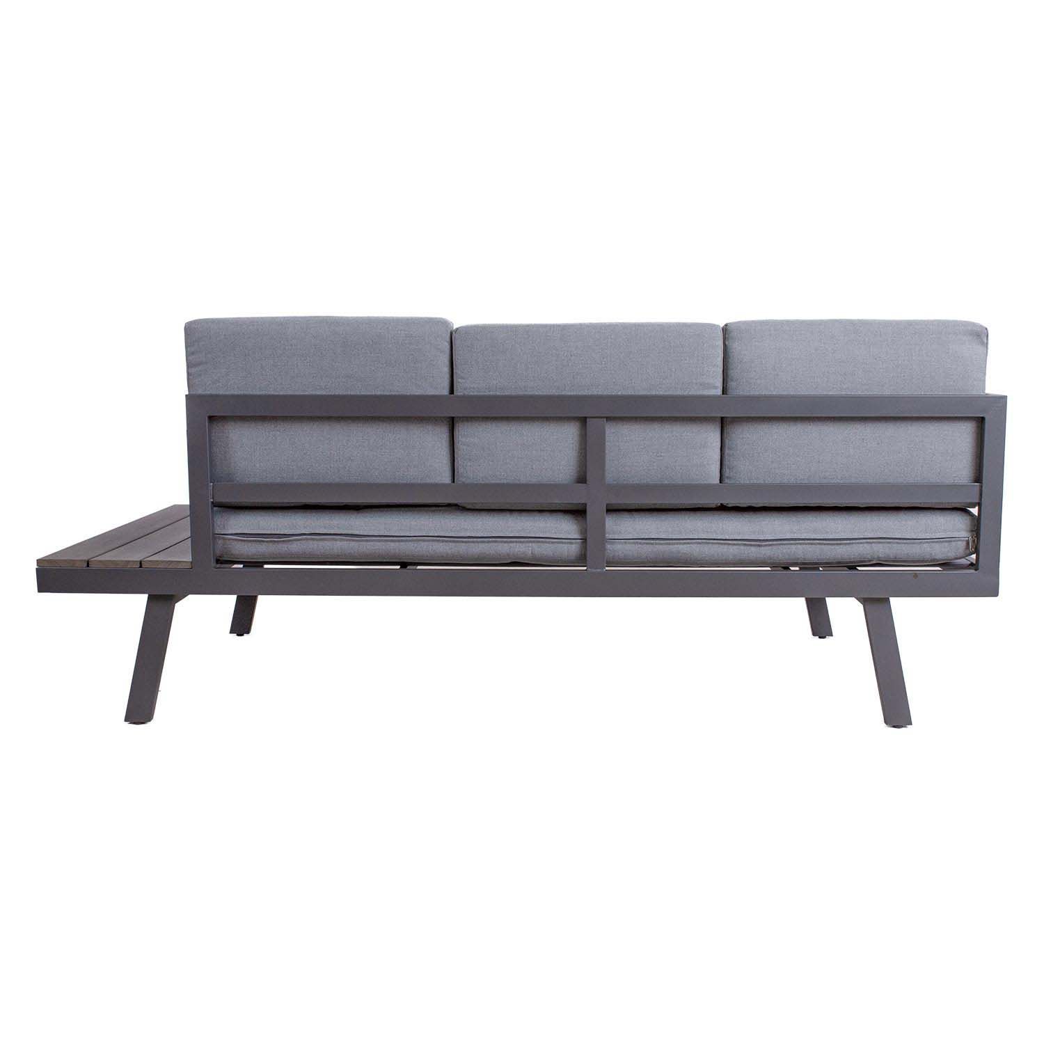 Aiamööblikomplekt DELGADO nurgadiivan ja laud. Nurgadiivani ja laua põhikonstruktsioon on valmistatud terasest ja viimistletud halli pulbervärviga. Lauaplaat ja abilauad diivani külgedel on kaetud kunstpuidust liistudega. Komplekti kuulub 2 istmepatja 148x73xH10cm, 6 seljatoepatja 50x35x10cm, 1 seljatoepadi 61x35x10cm. Padjakatted on valmistatud hallist polüesterkangast. Padjakatted on eemaldatavad ja pestavad. Diivanilaua mõõdud on 70x70xH44,5cm. Nurgadiivan koosneb kahest osast mõõtudega 180x75xH65cm ja 182x75xH65cm. Diivani üldmõõdud on 255x75/182xH65cm. Istme kõrgus raami ääreni on 32cm. Abilaua mõõdud on 75x29,5cm. Toode on muutlikes ilmastikutingimustes hästi vastupidav ja lihtsalt hooldatav. Kaitset ilmastikuolude eest vajavad ainult padjad. Hea lahendus patjade igapäevaseks hoiustamiseks ja kuivana hoidmiseks on padjakast. Välitingimustes kasutatava mööbli eluea pikendamiseks soovitame kasutada välimööbli katteid. HOIUSTAMINE: suvehooaja lõppedes soovitame aiamööblit hoiustada siseruumides. Puhastage ja kuivatage mööbel enne hoiule panekut. Kasutage hoiustamiseks kuiva ning hea ventilatsiooniga ruumi.