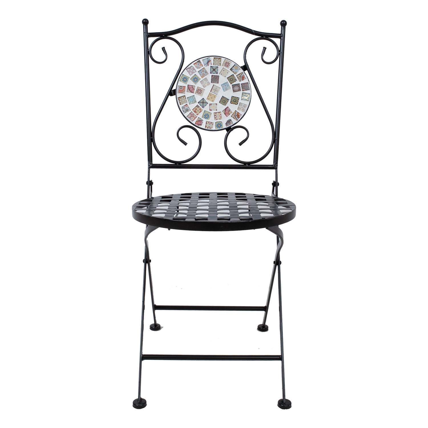 Tool CHECKER kokkupandav. Tool on valmistatu metallist ja viimistletud musta pulbervärviga. Seljatuge heledal taustal mustrilistest plaatidest mosaiik. Tool on kokkupandav. Tooli üldmõõdud on 38x51xH88cm. Ümmarguse istme läbimõõt on 38cm. Istme kõrgus on 47cm. Kaalupiirang 90kg. Tooli mõõdud kokkupanduna on 38x99x17cm. HOIUSTAMINE: suvehooaja lõppedes soovitame aiamööblit hoiustada siseruumides. Puhastage ja kuivatage mööbel enne hoiule panekut. Kasutage hoiustamiseks kuiva ja hea ventilatsiooniga ruumi.