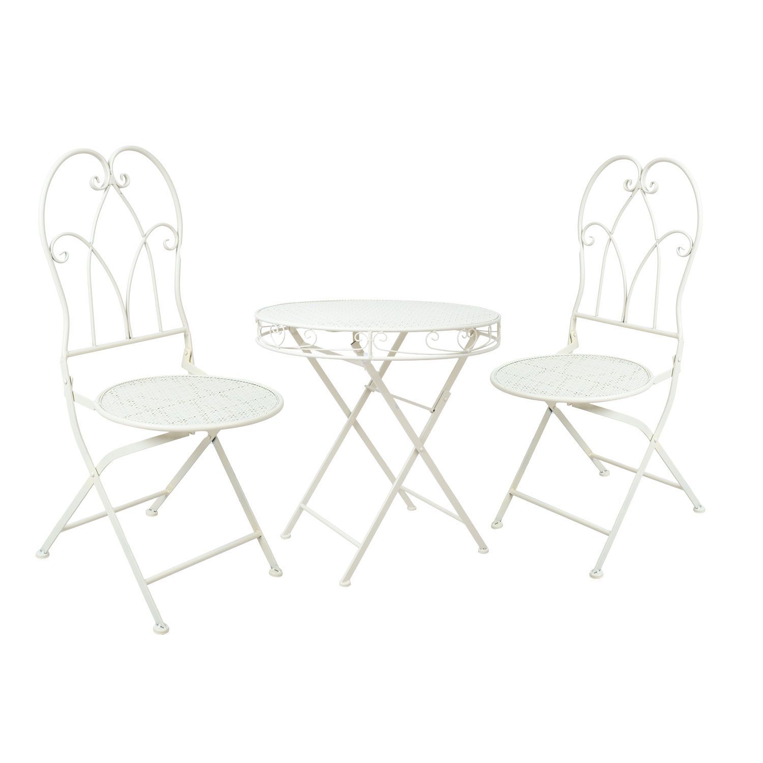 Rõdukomplekt SANDY laud ja 2 tooli, kokkupandav, antiikvalge. Laud ja toolid on valmistatud metallist ja viimistletud pulbervärviga. Laua mõõdud on D70xH73cm, tooli mõõdud on 41x54xH93cm. Kokkupanduna võtavad laud ja toolid vähe ruumi ning neid on lihtne hoiustada ja teisaldada. HOOLDUS JA HOIUSTAMINE: metallist mööbel on praktiliselt hooldusvaba, piisab regulaarsest puhastamisest. Suvehooaja lõppedes soovitame aiamööblit hoiustada siseruumides. Puhastage ja kuivatage mööbel enne hoiule panekut. Kasutage hoiustamiseks kuiva ning hea ventilatsiooniga ruumi.