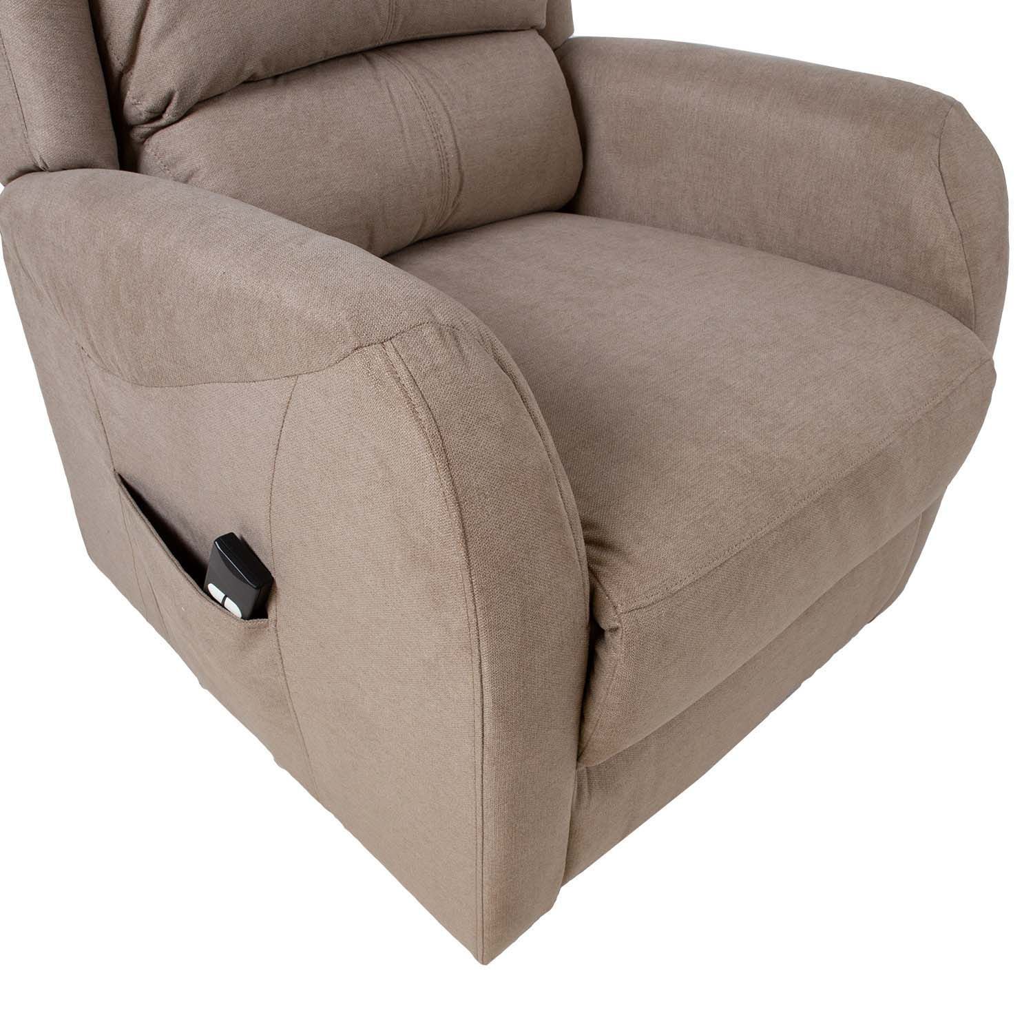 Tugitool BARRY elektriline lift recliner 77x90xH106cm, beež. Recliner tüüpi tugitooli jalatoe asendit on võimalik muuta puldiga juhitava elektrilise mehhanismi abil. Jalatuge üles tõstes liigub seljatugi sujuvalt kaasa. Tugitool on varustatud tõstemehhanismiga, mis surub kogu tooli alusest ülespoole ja aitab kasutajal tõusta või istuda puusa, selga või käsi pingutamata. Suurepärane kingitus vanavanematele! Kattematerjal: 100% polüesterkangas. Karkass: puit, metall. Polsterdus: polüuretaanvaht. Istme laius 50cm, istme sügavus 50cm, istme kõrgus 50cm. Seljatoe kõrgus istmest 70cm, käetoe kõrgus istmest 21cm, käetoe laius 12cm.