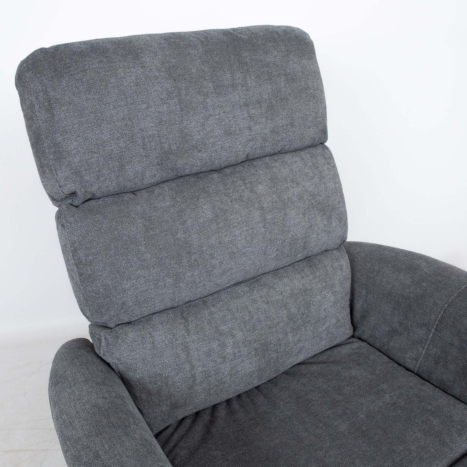 Tugitool BARCLAY manuaalsne recliner 79x86xH105cm, hall. Recliner tüüpi tugitooli jalatoe asendit on võimalik muuta manuaalse mehhanismi abil. Jalatoe tõstmiseks tõmmake tooli paremal välisküljel asuv kang üles. Surudes jalatuge alla fikseerub see automaatselt algasendisse. Kattematerjal: 100% polüesterkangas, Martindale’i väärtus vahemikus 10 000-15 000. Karkass: puit, metall. Polsterdus: polüuretaanvaht 20-24kg/m³. Tooli üldmõõdud on 79x86xH105cm. Istme laius 52cm, istme sügavus 54cm, istme kõrgus 48cm. Seljatoe kõrgus 69cm. Käetoe kõrgus maast 63cm.