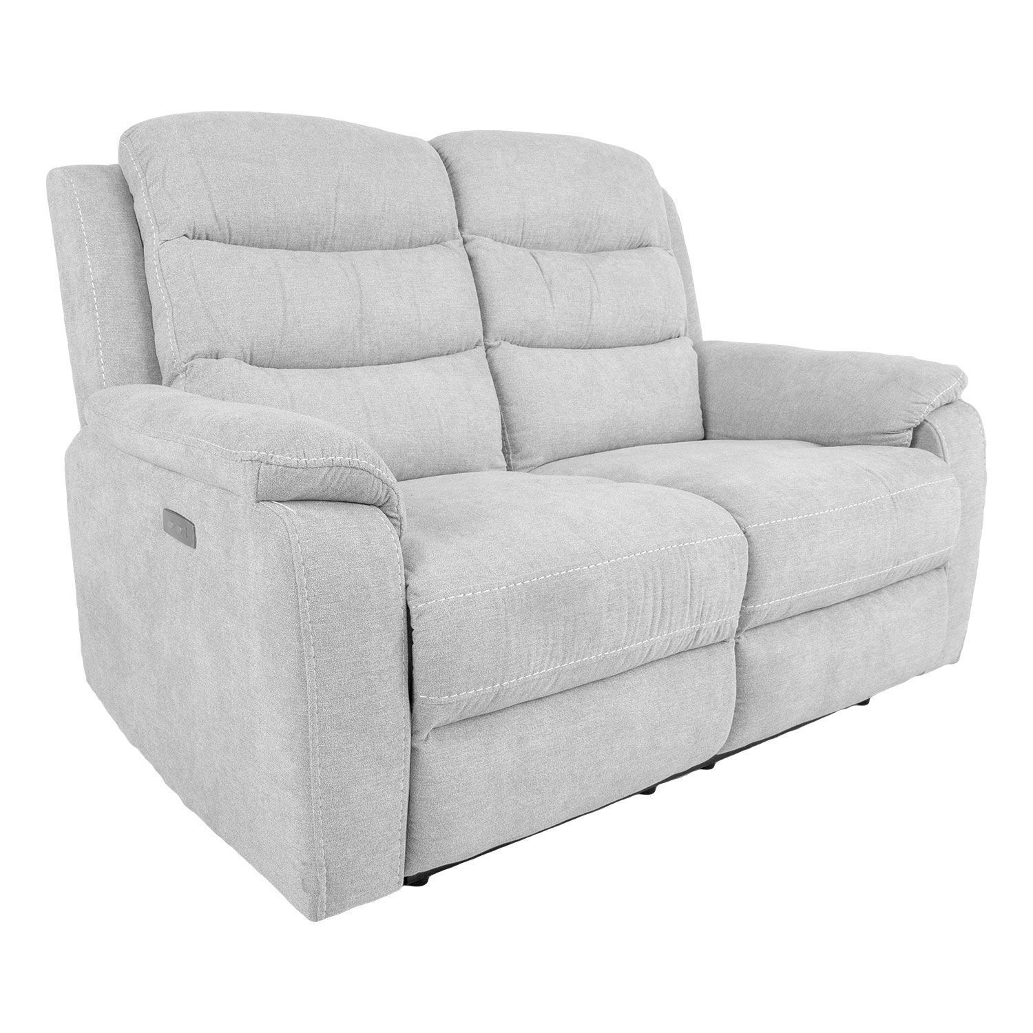 Diivan MIMI 2-kohaline elektriline recliner 153x93xH102cm, hõbehall. Recliner tüüpi diivani mõlema istme selja- ja jalatoe asendit on võimalik muuta elektrilise mehhanismi abil. Jalatuge üles tõstes liigub seljatugi sujuvalt kaasa lamavasse asendisse. Kattematerjal: 100% polüesterkangas, Martindale 30 000. Karkass: puit, vineer ja metall. Polsterdus: polüuretaanvaht.