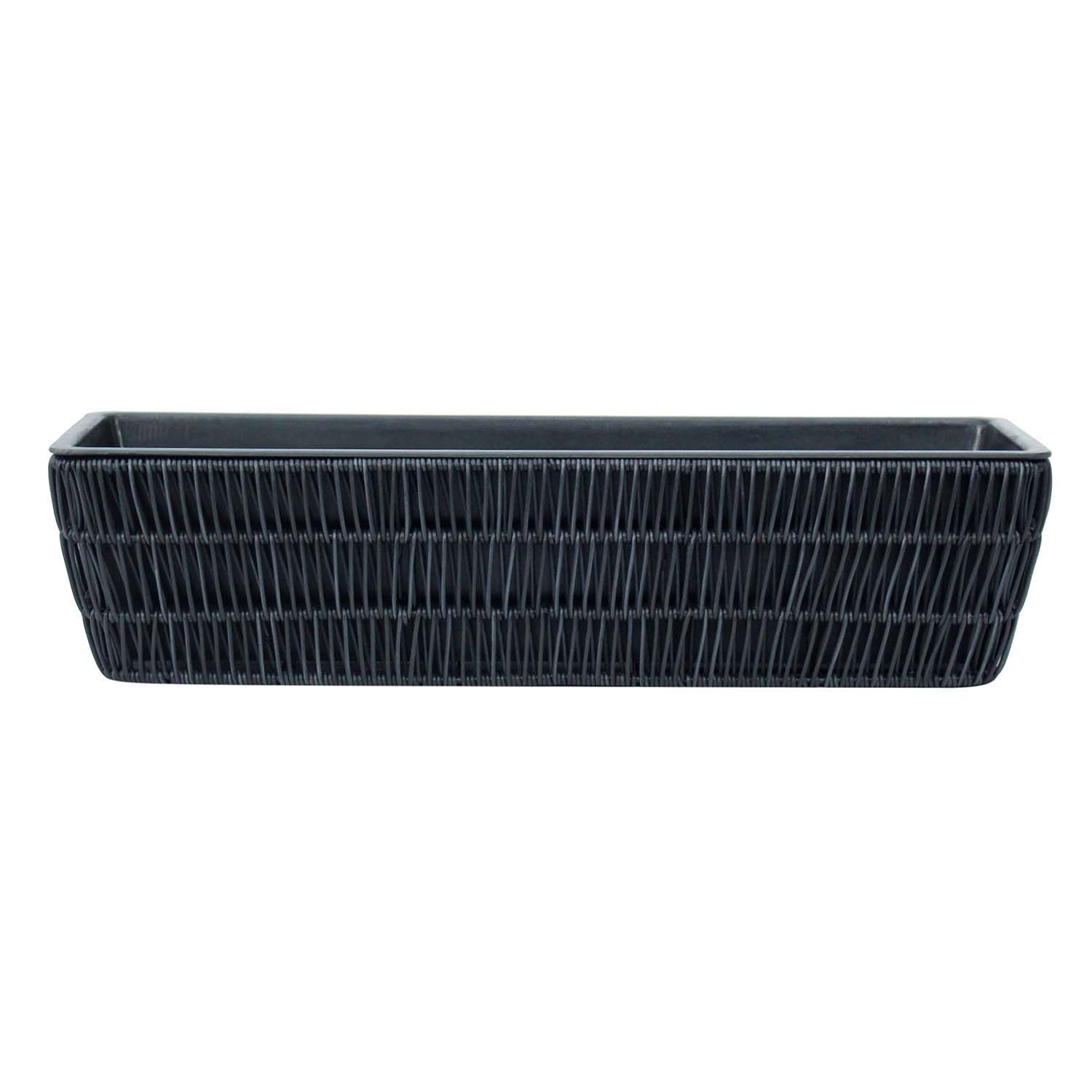 Lillekast WICKER 60x19xH15cm, must. Lillekasti metallraam on kaetud plastikpunutisega. Lillekasti sees on plastikust sisepotti mõõtudega 56x16xH13cm. Sisepott on ilma auguta.
