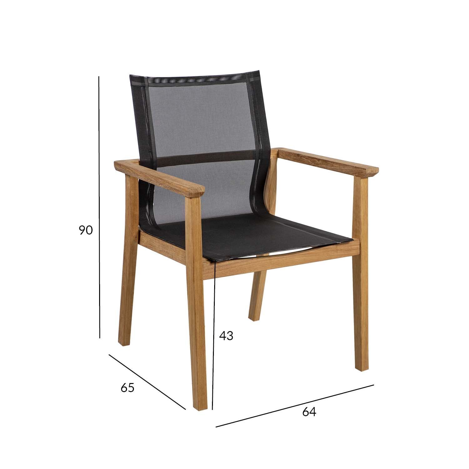 Tool NAUTICA must. Tooli raam on valmistatud tiikpuust. Kõik puidust osad on peenlihvitud ja neid ei ole õlitatud ega muul viisil keemiliselt töödeldud. Tänu suurele looduslike õlide sisaldusele on tiikpuu väga vastupidav niiskuse ning puidukahjurite suhtes ning ei vaja täiendavat viimistlemist või õlitamist. Tiikpuu talub väga hästi erinevaid ilmastikutingimusi ja säilitab oma suurepärase välimuse ja parimad omadused pikkadeks aastateks. Iste ja seljatugi on valmistatud mustast batylinest. Batyline materjali kõige olulisem omadus on selle nõtkus ja optimaalne istumismugavus. Lisaks erakordsele mehaanilisele tugevusele on materjalil kõrge keemiline vastupidavus. Sünteetiline kate tagab ülikõrge ilmastiku- ja UV-kindluse. Batyline ei ima niiskust, tänu sellele kuivab materjal väga kiiresti ja on maksimaalselt pleki- ja hallituskindel ning lihtsalt puhastatav. Tooli üldmõõdud on 64x65xH90cm. Istme laius 47,5cm, istme sügavus 48cm, istme kõrgus 43cm. Seljatoe kõrgus 48cm, käetoe kõrgus maast 66cm. Kaalupiirang 120kg. Toolid on virnastatavad. HOOLDUS: puhastage mööblit regulaarselt, kaitske liigniiskuse ja UV kiirguse eest. Puidust pindade värskendamiseks võib need soovikorral kergelt üle lihvida. HOIUSTAMINE: suvehooaja lõppedes soovitame aiamööblit hoiustada siseruumides. Puhastage ja kuivatage mööbel enne hoiule panekut. Kasutage hoiustamiseks jahedat, kuiva ning hea ventilatsiooniga ruumi.