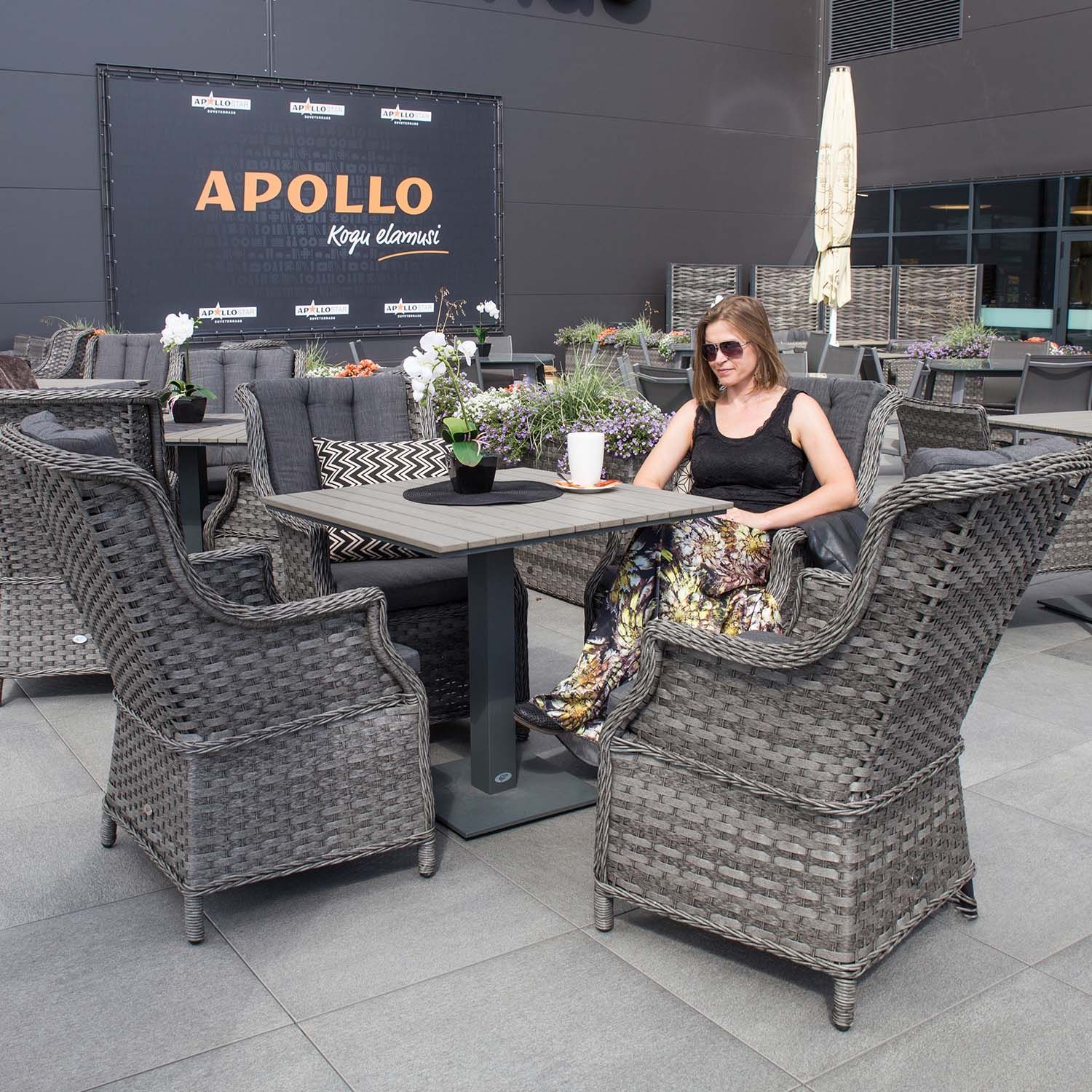 Tugitool GENEVA helehall. Paigutades aiatoolid terrassile või aeda, saab luua hubase istumisala, kus päeval kaunist ilma nautida või õdusaid õhtuid veeta. Kombineerides sarnast tooni tooteid, on võimalik luua endale meelepärane ja harmooniline komplekt. Tooli plastikpunutise värvikoodid on JX79280, JX79268, JX79308. Mugavad ja pehmed padjad kuuluvad toote juurde. Tugitooli raam on valmistatud alumiiniumist ning kaetud halli tooni plastikpunutisega. Toode on muutlikes ilmastikutingimustes vastupidav. Tugitooli istme kõrgus on 50cm, sügavus 50cm, istme laius eest 48cm ja tagant 44cm. Tugitooli mõõdud on 76x61xH98cm.