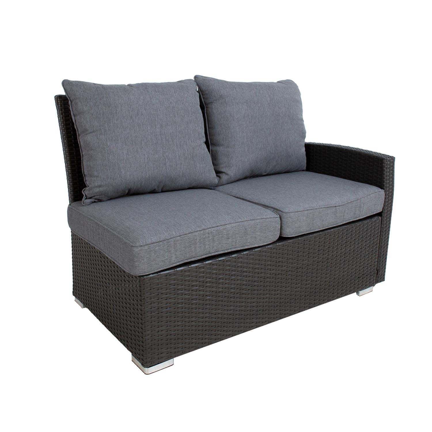 Aiamööblikomplekt MADRID reguleeritava kõrgusega laud, nurgadiivan, 2 tumbat. Diivani, tumba ja laua raam on valmistatud alumiiniumist ning kaetud pruuni plastikpunutisega. Laua mõõdud on 100x100xH52-69cm Lauaplaat: 8mm läbipaistev karastatud klaas. 3-kohalise diivani mõõdud on 192,5x73xH84,5cm, 2-kohalise diivani mõõdud on 120,5x73xH84,5cm, tumba mõõdud on 80x40xH34cm. Padjad kuuluvad komplekti. Padjakatted on valmistatud hallist polüesterkangast. Toode on muutlikes ilmastikutingimustes vastupidav ja väga lihtsalt hooldatav. Kaitset ilmastikuolude eest vajavad ainult padjad. Välitingimustes kasutatava mööbli eluea pikendamiseks soovitame kasutada välimööbli katteid. HOIUSTAMINE: suvehooaja lõppedes soovitame aiamööblit hoiustada siseruumides. Puhastage ja kuivatage mööbel enne hoiule panekut. Kasutage hoiustamiseks kuiva ning hea ventilatsiooniga ruumi.