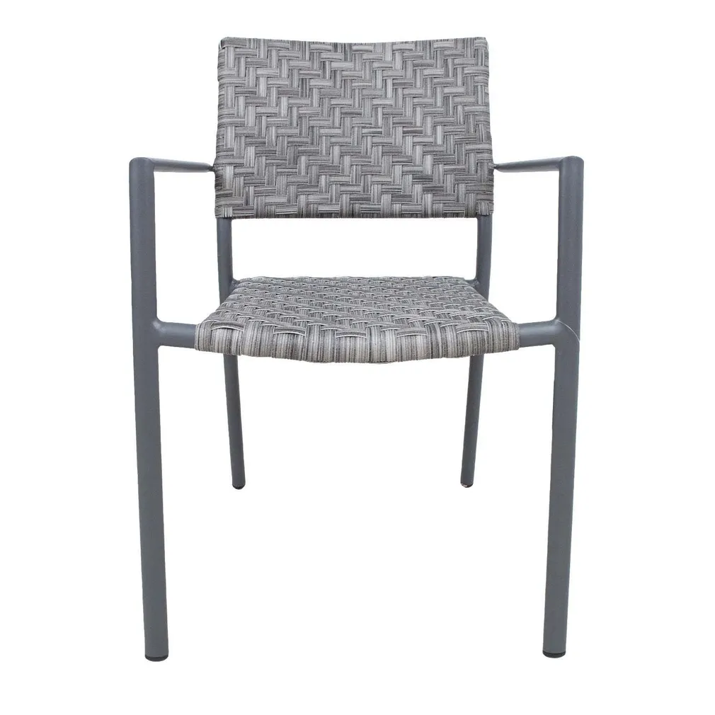 Tool CHEMNITZ hall. Tooli iste ja seljatugi on valmistatud hallist plastikpunutisest. Tooli raam on valmistatud tumehallist pulbervärvitud alumiiniumist. Metalltorude mõõdud on 30x20mm ja D25x1,7mm. Tooli mõõdud on 54x58xH86cm.