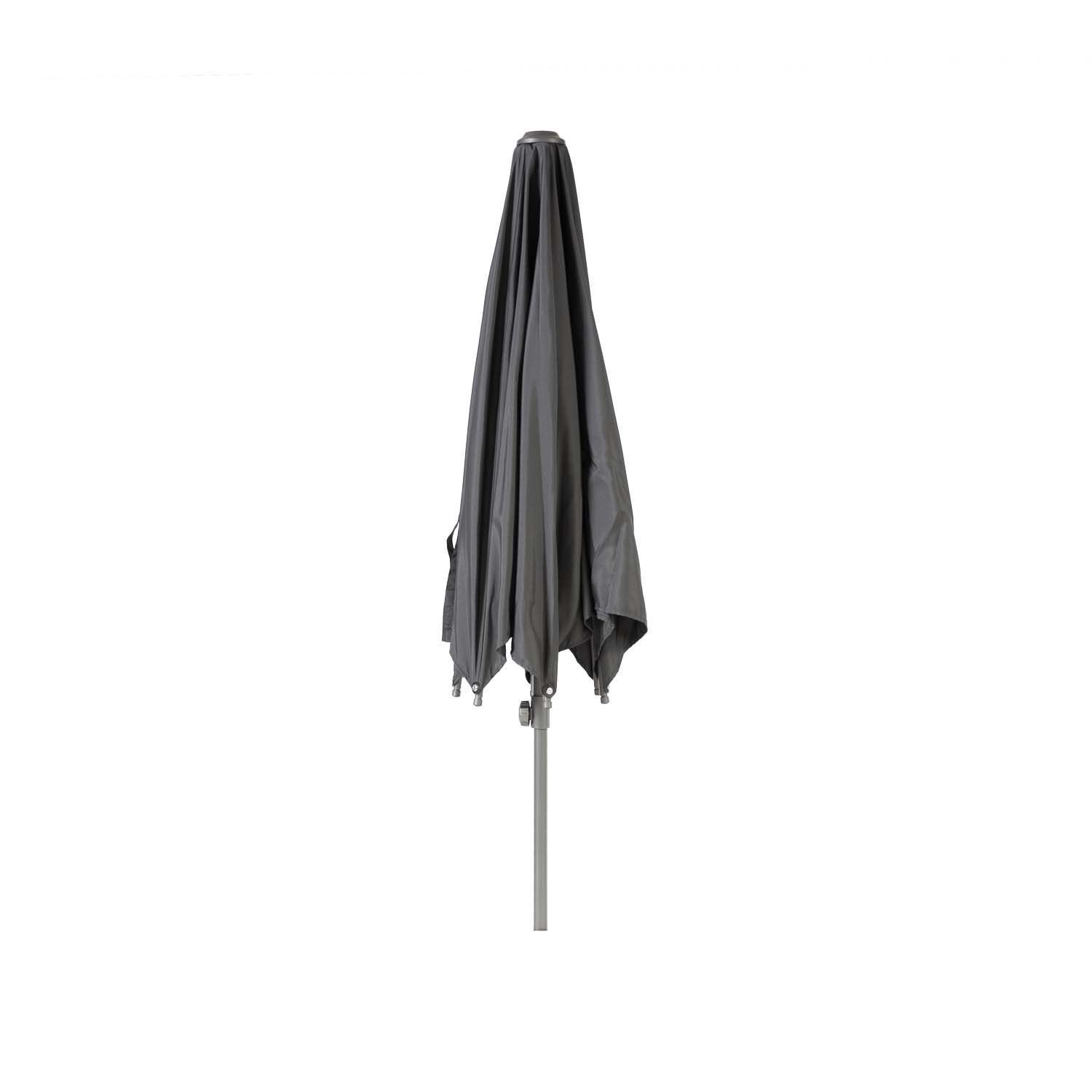 Päikesevari BALCONY D2,7m, tumehall. Päikesevarju kate on valmistatud tumehallist polüesterkangagast 180g/m². Varjul on 6 terasribi D19mm. Alumiiniumist jalg koosneb kahest torust D38/35mm. Jalg ja ribid on kaetud halli pulbervärviga. Varjul on avamiseks lihtne push-up mehhanism. Päikesevarjualus ei kuulu komplekti. HOIATUS: toode ei ole mõeldud kasutamiseks tugeva tuule või vihma korral. Ärge jätke avatud päikesevarju järelevalveta. HOOLDUS: hoiustage kuivas, hea ventilatsiooniga ruumis. Enne päikesevarju hoiule panemist laske sel täielikult kuivada.