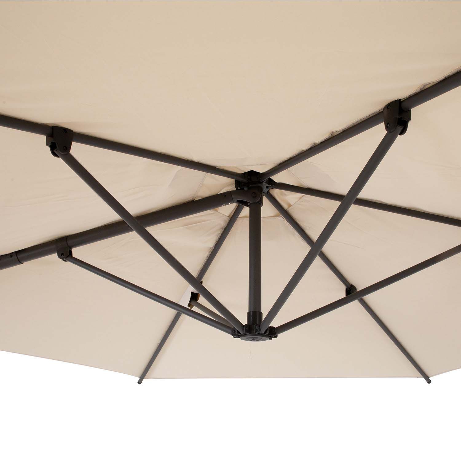 Päikesevari ROMA D3x2,6m beež. Päikesevarju kate on valmistatud beežist polüesterkangagast 180g/m². Varjul on 8 terasribi D19mm. Terasest jalg koosneb kahest torust D57mm. Jalg ja ribid on kaetud tumehalli pulbervärviga. Komplekti kuulub metallist alusrist ilma lisaraskuseta. Lisaraskuseks soovitame päikesevarjualuse kive koodiga 11786 või 25188. HOIATUS: toode ei ole mõeldud kasutamiseks tugeva tuule või vihma korral. Ärge jätke avatud päikesevarju järelevalveta. HOOLDUS: hoiustage kuivas, hea ventilatsiooniga ruumis. Enne päikesevarju hoiule panemist laske sel täielikult kuivada.
