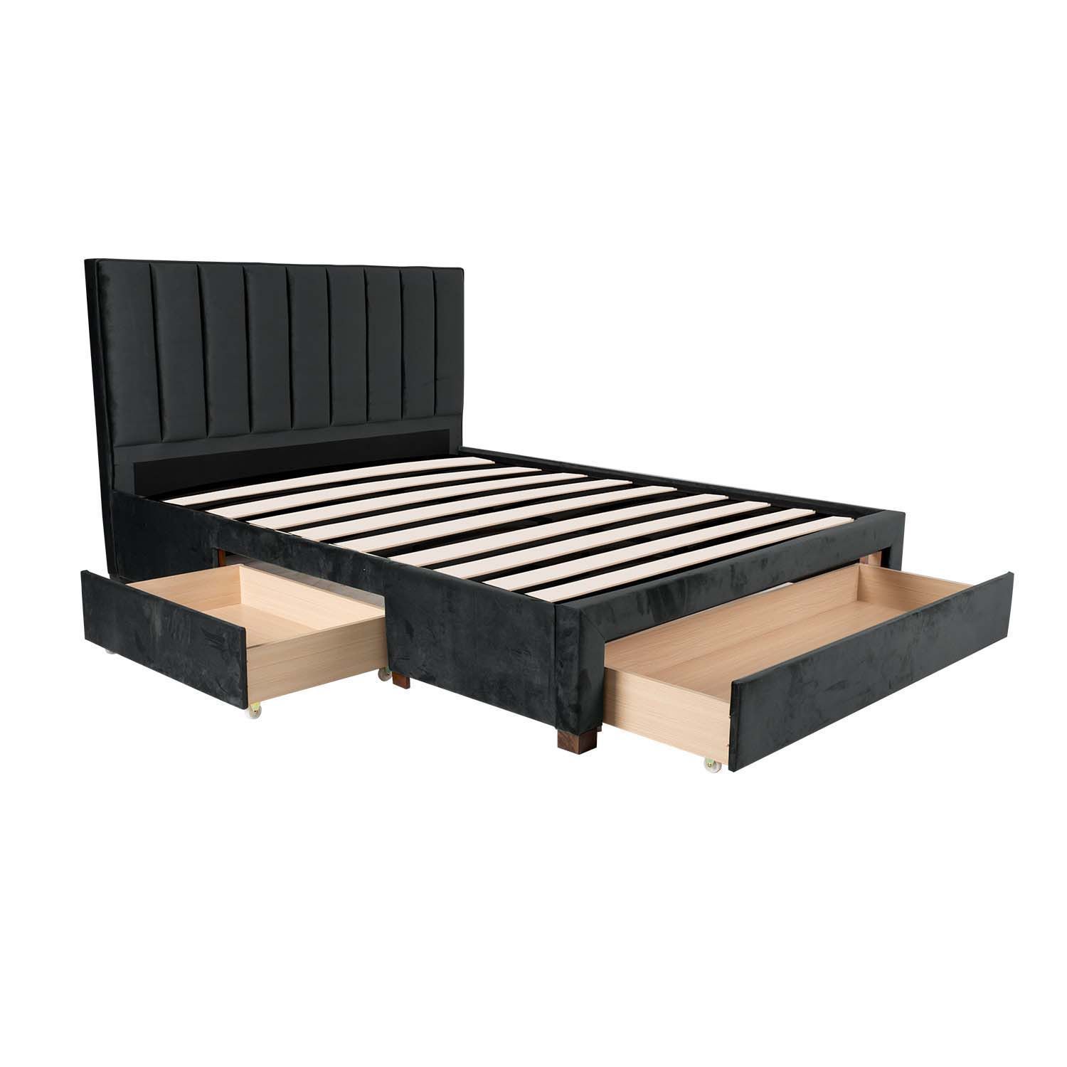 Voodi GRACE 160x200cm, tumehall. Voodi raami sees asuvad ruumikad panipaigad. Sahtlitesse saab mugavalt paigutada nii tekid, padjad kui muu vajaliku. Voodi korpus on valmistatud MDF plaadist ja kaetud tumehalli polüesterkangaga. Komplekt sisaldab voodijalgu, peatsit ja voodi põhjalippe. Madrats ei kuulu komplekti. Sobiva madratsi mõõdud on 160x200cm. Toote mõõdud on 165x215xH111cm.