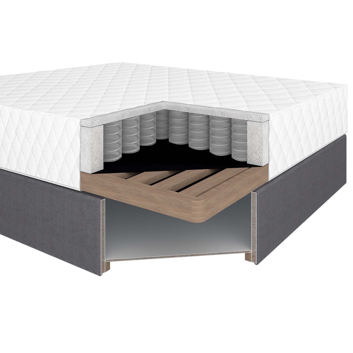 Voodi LENE 160x200cm, madratsiga. Voodil on pocket vedrustusega madrats, 210 vedru/m2. Vedrude kõrgus on 13cm. Vedrud on kaetud 23kg/m3 porolooniga, mille paksus on 2cm. Madratsi jäikus: jäik. Madrats on kaetud 200g/m2 polüestervatiiniga. Voodi all on mahukas panipaik, mis on valmistatud täispuidust ja lamineeritud puitlaastplaadist. Selle küljed on kaetud porolooniga. Voodi karkass on valmistatud täispuidust. Voodiraam on kaetud kangaga, Martindale 100 000. Komplekti kuulub voodipeats, mis on voodiga sama lai. Peatsi paksus on 8cm. Voodil on neli plastikust jalga. Kattemadrats ei kuulu komplekti. Voodi kõrgus on 50,5cm koos jalgadega. Jalgade kõrgus on 2,5cm. Voodi mõõdud on 162x209xH110cm. Toode on valmistatud EL-is.
