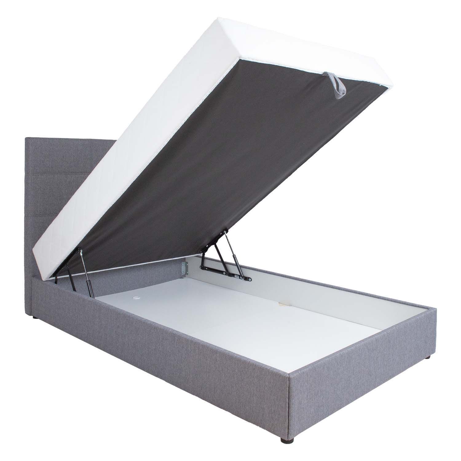 Kontinentaalvoodi LEIKO 120x200cm, hall. Voodil on pocket-vedrustusega madrats, 210 vedru/m2. Vedrude kõrgus on 13cm. Vedrusid katab poroloonikiht, mis on 2cm paks. Voodi all on mahukas panipaik, mis on valmistatud täispuidust ja lamineeritud puitlaastplaadist. Selle küljed on kaetud porolooniga. Voodiraam on kaetud kangaga. Komplekti kuulub voodipeats, mis on voodist 3cm laiem. Peatsi paksus on 9cm. Kaasas on ühenduselemendid peatsi kinnitamiseks voodi külge. Voodil on neli plastikust jalga, kõrgus 2,5cm. Jalad on musta värvi. Toote mõõdud on 123x210xH114,5cm. Toode on valmistatud EL-is.