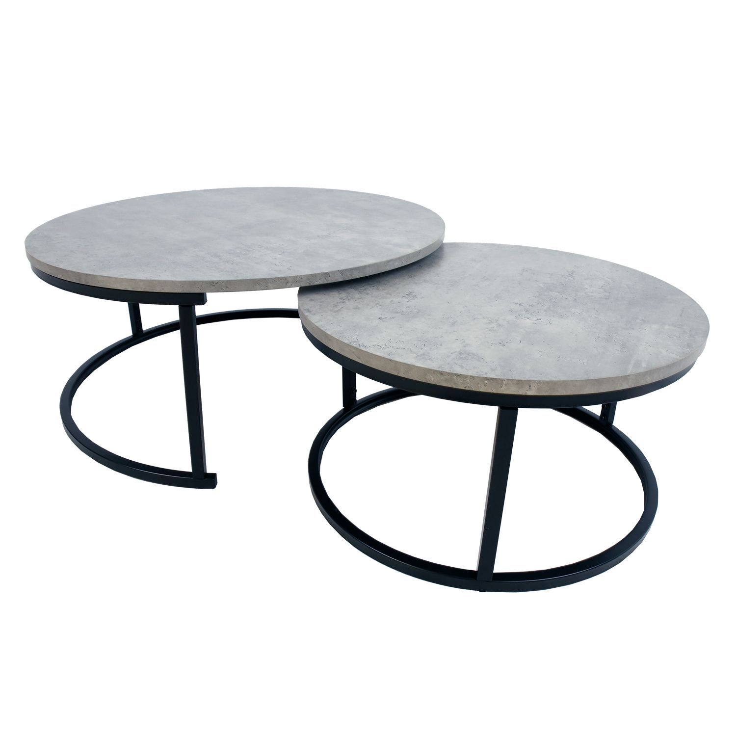 Diivanilaud BRITU 2tk komplektis, hall. Lauaplaat on betooni meenutava dekooriga ning valmistatud 18mm paksusest MDF plaadist. Laua raam ja jalad on valmistatud metallist ning kaetud musta pulbervärviga. Laudade mõõdud on D80xH35cm, D60xH32cm.