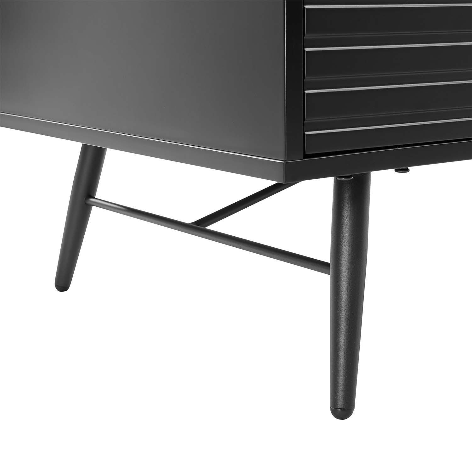 Riidekapp PIXAR 2-ukse ja sahtliga 100x56xH175cm, must. Mööbliplaadist valmistatud riidekapp on viimistletud musta polüuretaanvärviga. Ribipaneelist uste ja sahtli esipaneelid ning kuldsed käepidemed annavad pilkupüüdva välimuse. Kapi jalad ja alusraam on valmistatud metallist.