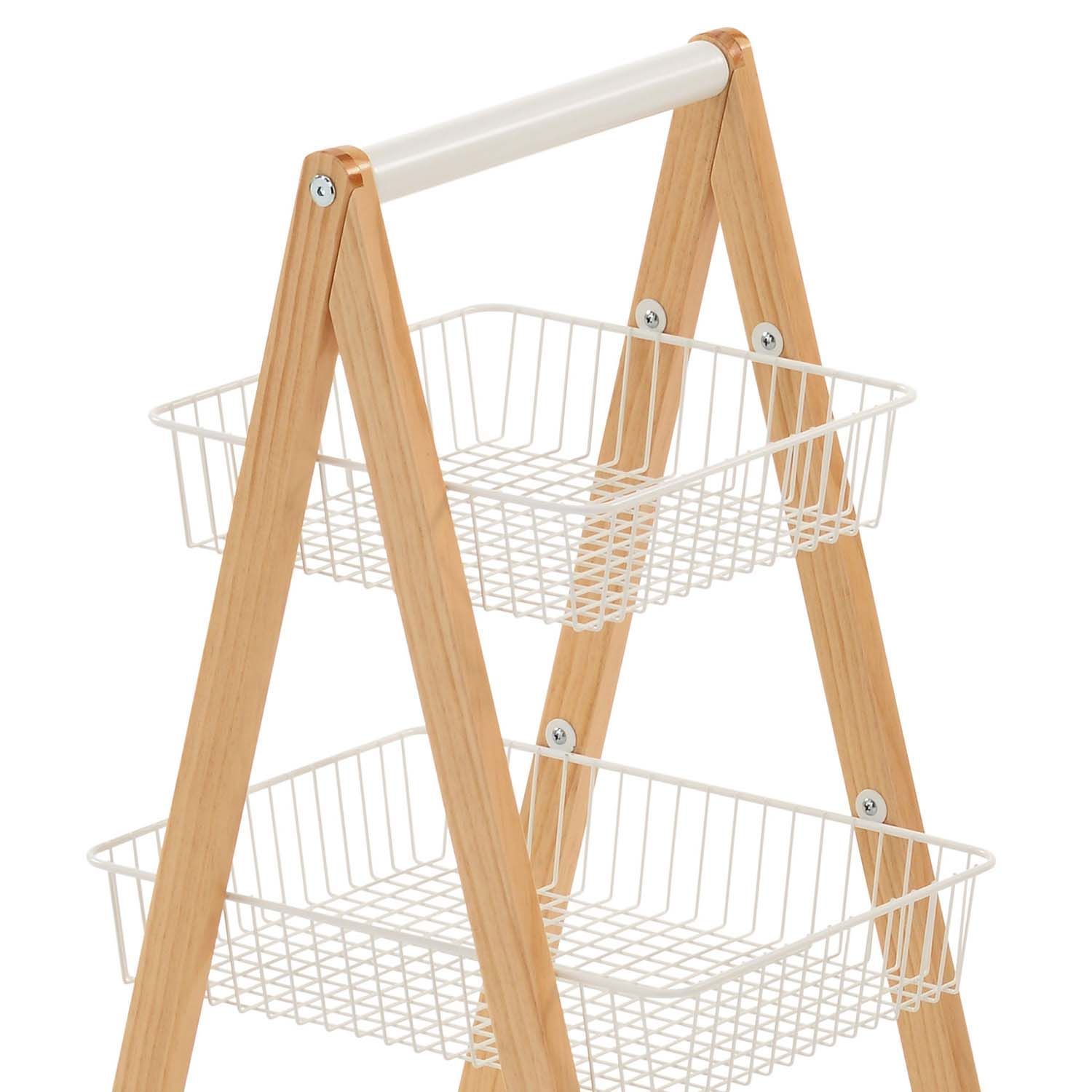 Riiul BREN valge, 48x32xH79cm. Funktsionaalne kolmekordne riiul sobib hästi esikusse esemete hoiustamiseks kui ka panipaika või sahvrisse. Riiulil on rattad, mistõttu on seda mugav liigutada. Toote raam on valmistatud täismännipuidust ning on naturaalse tooniga. Riiuli kolm terastraadist korvi on kaetud valge pulbervärviga. Riiuli mõõdud on 48x32xH79cm.