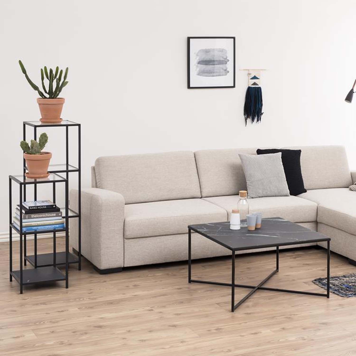 Riiul SEAFORD 35x37xH119,5cm, klaas. Maitsekat ja praktilist riiulit on võimalik kasutada erinevates ruumides asjade mugavaks hoiustamiseks. Riiuli on valmistatud läbipaistvast ja matist musta värvi klaasist, mis on 5mm paks. Raam on valmistatud musta värvi metallist. Toote mõõdud on 35x37xH119,5cm.
