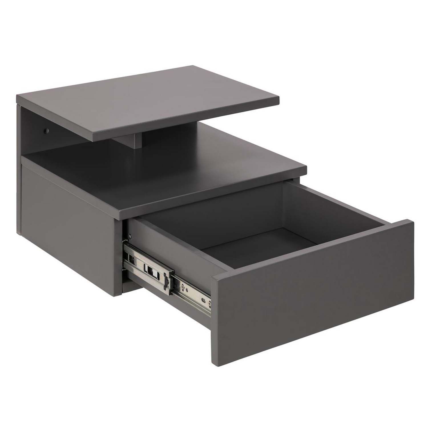 Öökapp ASHLAN 35x32xH22,5cm, riiuliga ja sahtliga, seinakinnitusega, materjal: puit, värvus:helehall, viimistlus: lakitud. Seinale kinnitatav, valmistatud MDF-plaadist, sahtlil metallsiinid.