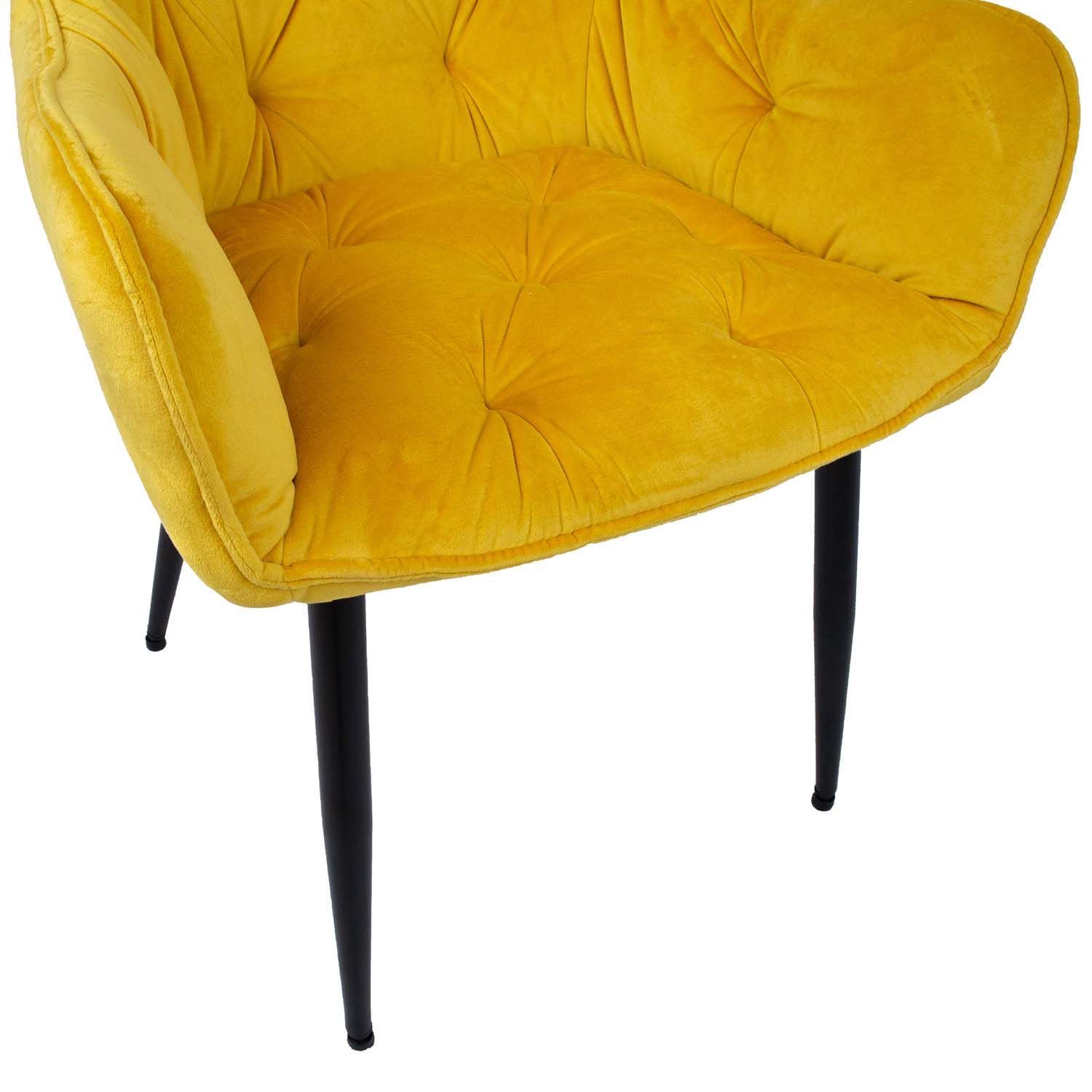 Tool BRITA kollane. Mugava vormiga iste on kergelt polsterdatud ja kaetud kollase sametkangaga. Istme kõrgus on 47,5cm. Kattematerjal: 100% polüester, Martindale 25 000. Istme karkass: metall ja vineer. Polsterdus: polüuretaanvaht. Metallist jalad on kaetud musta pulbervärviga. Tooli üldmõõdud on 58x63H83cm. Istme laius 40cm, istme sügavus 43cm, istme kõrgus 47cm. Seljatoe kõrgus 43cm. Kaalupiirang 120kg.