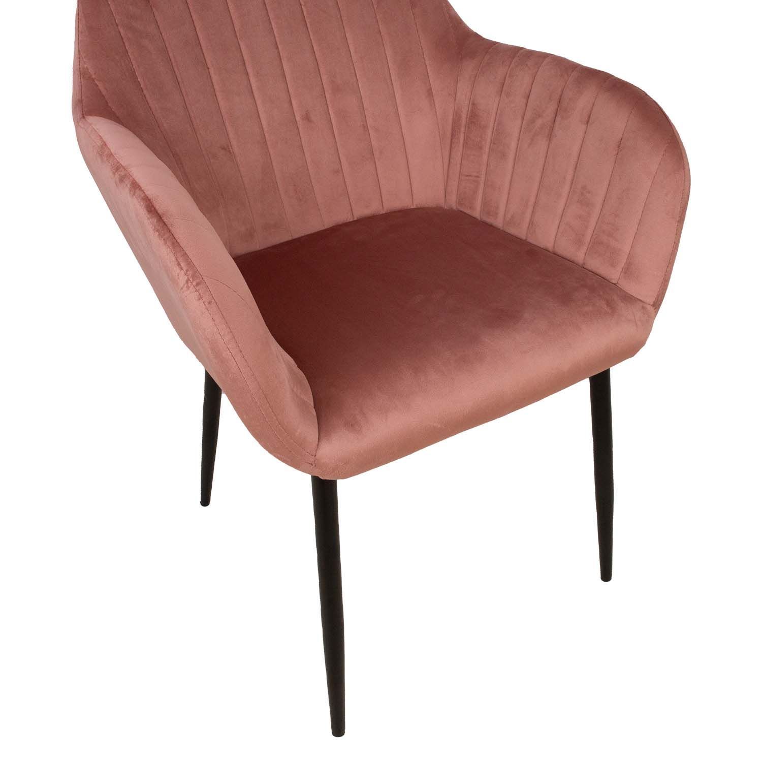Tool EVELIN roosa. Mugava vormiga iste on kergelt polsterdatud ja kaetud roosa sametkangaga. Kattematerjal: 100% polüester, Martindale 25 000. Istme karkass: metall ja vineer. Polsterdus: polüuretaanvaht. Metallist jalad on kaetud musta pulbervärviga. Tooli üldmõõdud on 58x59xH81cm. Istme laius 37cm, istme sügavus 39cm, istme kõrgus 46cm. Käetoe kõrgus maast 65cm. Kaalupiirang 120kg.