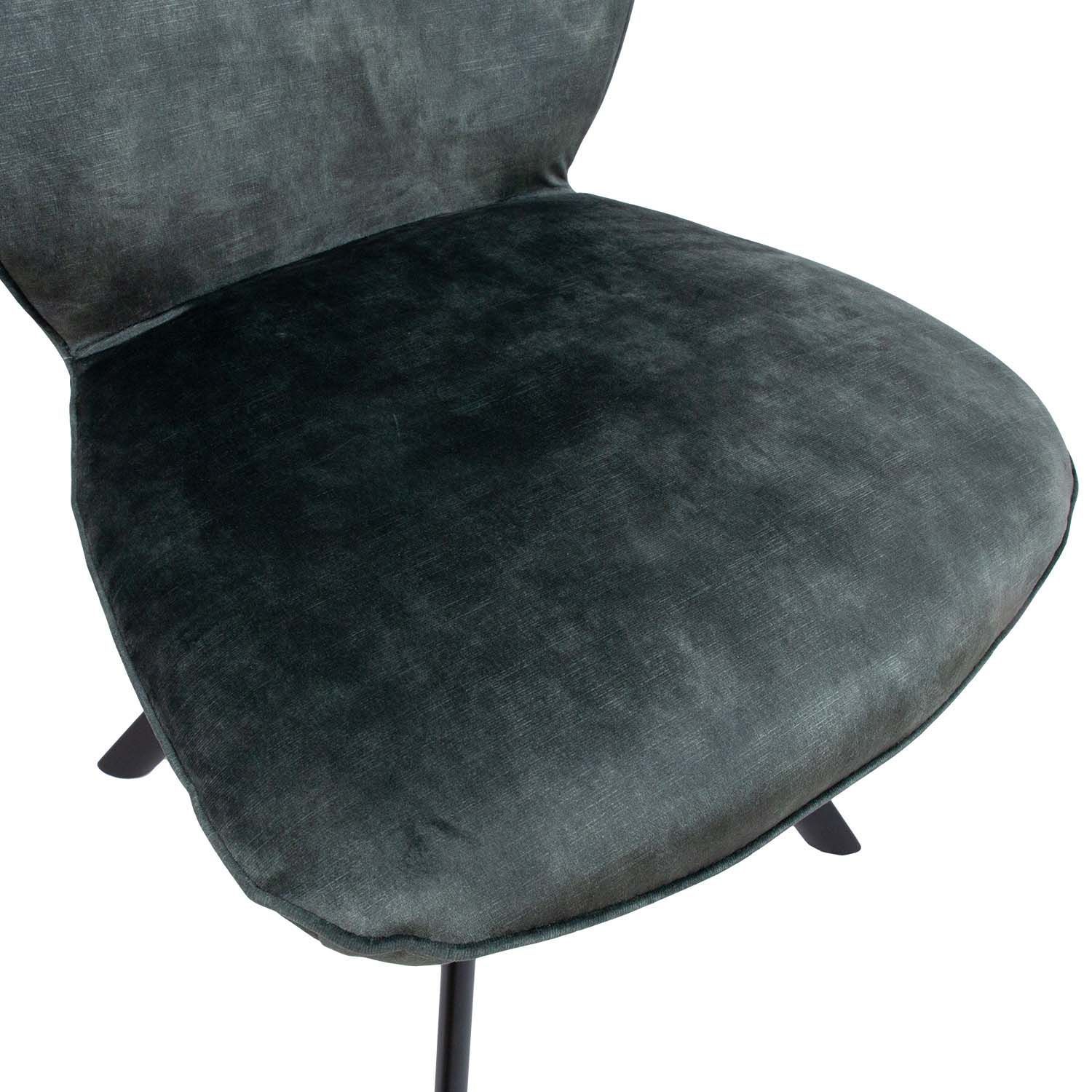 Tool EDDY 49x55xH89cm, roheline samet. Söögitooli mugava vormiga iste on kergelt polsterdatud ja kaetud polüesterkangaga. Kasutatud on toon-toonis, kuid erineva pinna struktuuriga kangaid. Pulbervärvitud mustad metallist jalad. Tooli istmekõrgus 48cm, istme laius 49cm, istme sügavus 42cm. Seljatoe kõrgus 47cm. Kaalupiirang 120kg.