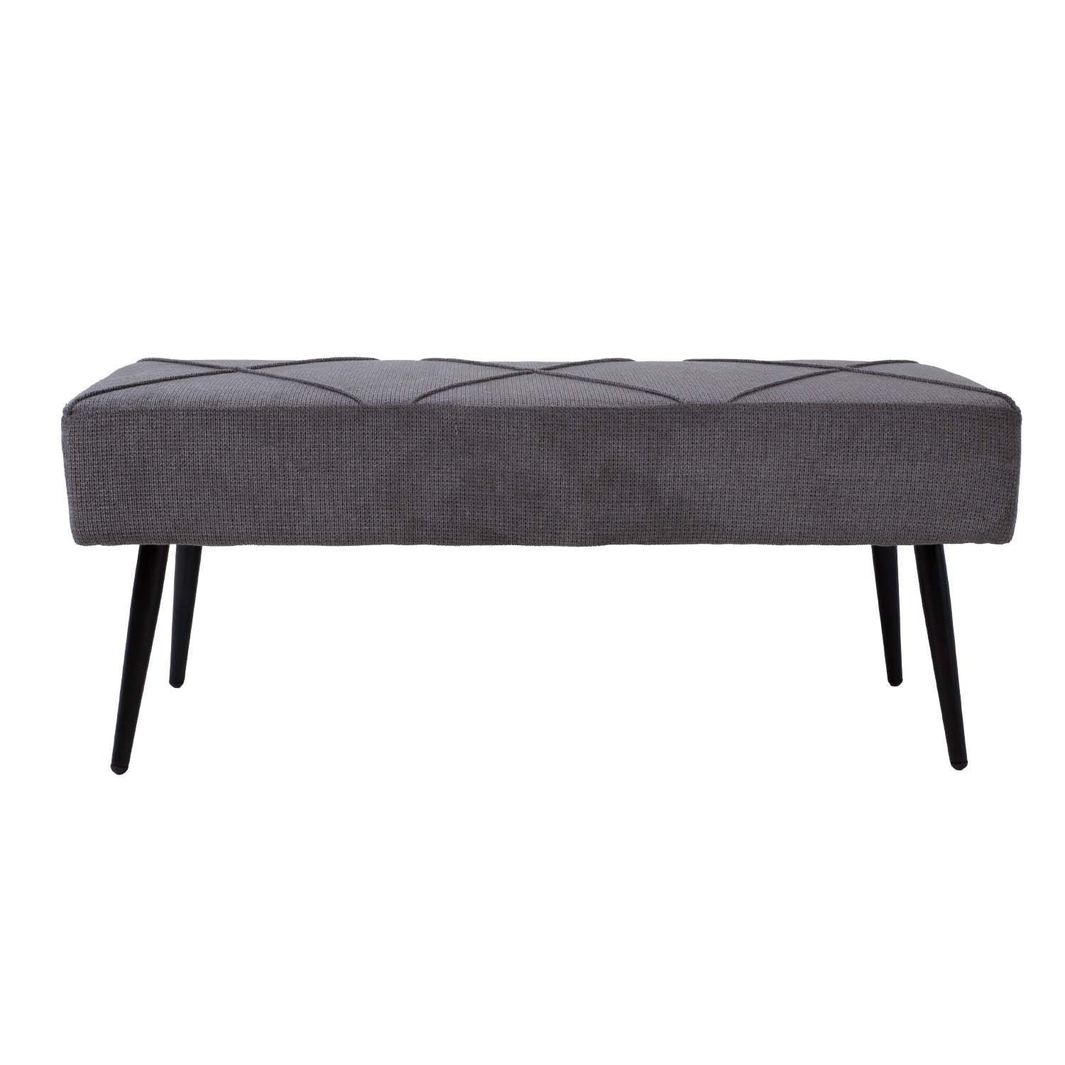 Pink KELSI 100x36x43cm, hall. Pingi iste on polsterdatud ja kaetud polüesterkanaga. Pingi jalad on valmistatud metallist ja viimistletud musta pulbervärviga.