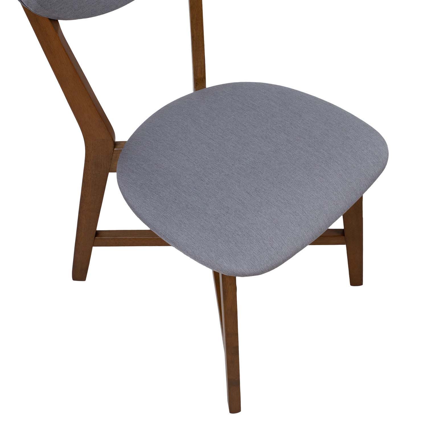 Tool JESPER hall. Tooli kergelt polsterdatud iste on kaetud halli polüesterkangaga. Tooli jalad ja raam on valmistatud kummipuust ja viimistletud pähkli toonis lakiga. Tooli üldmõõdud on 44x56x79,5cm. Istme kõrgus 45,5cm. Kaalupiirang 100kg.