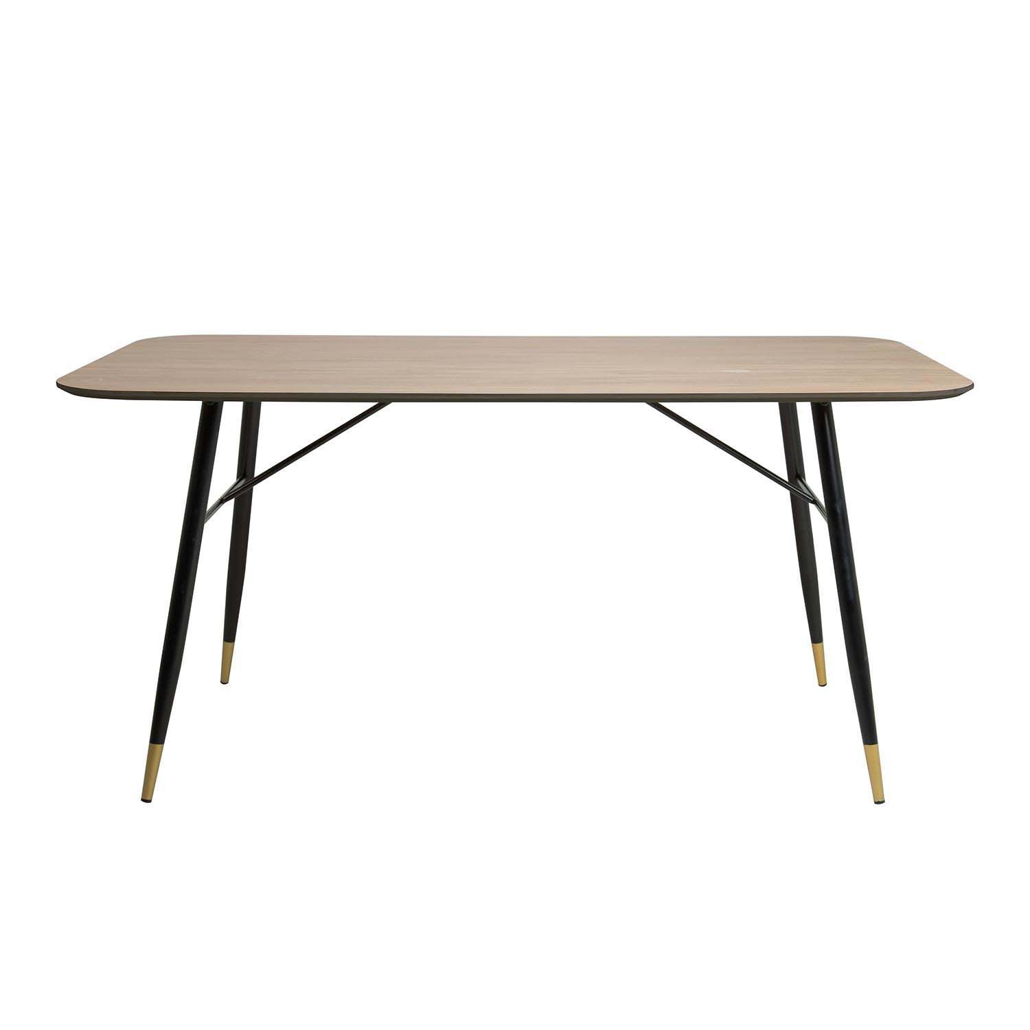 Söögilaud FLORA 160x90xH77cm. Lauaplaat: puidudekooriga melamiinplaat. Lauaplaadil on mustad servad. Lauajalad ja alusraam on valmistatud metallist ja viimistletud musta ja kuldse pulbervärviga.