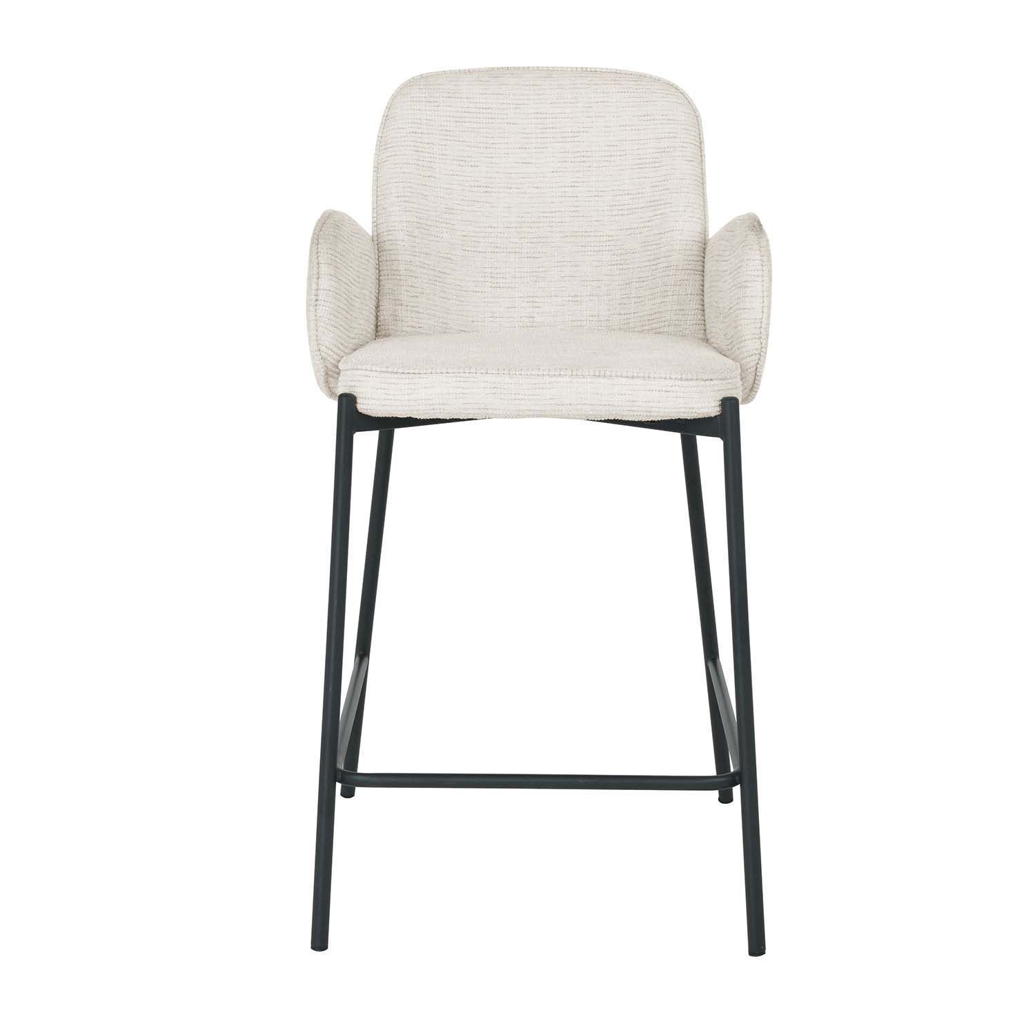 Baaritool DAMEN helebeež. Tooli iste on kergelt polsterdatud ja kaetud polüesterkangaga. Tooli jalad ja alusraam on valmistatud metallist ja viimistletud musta pulbervärviga. Tooli üldmõõdud on 50x52xH95cm. Kaalupiirang 120kg.