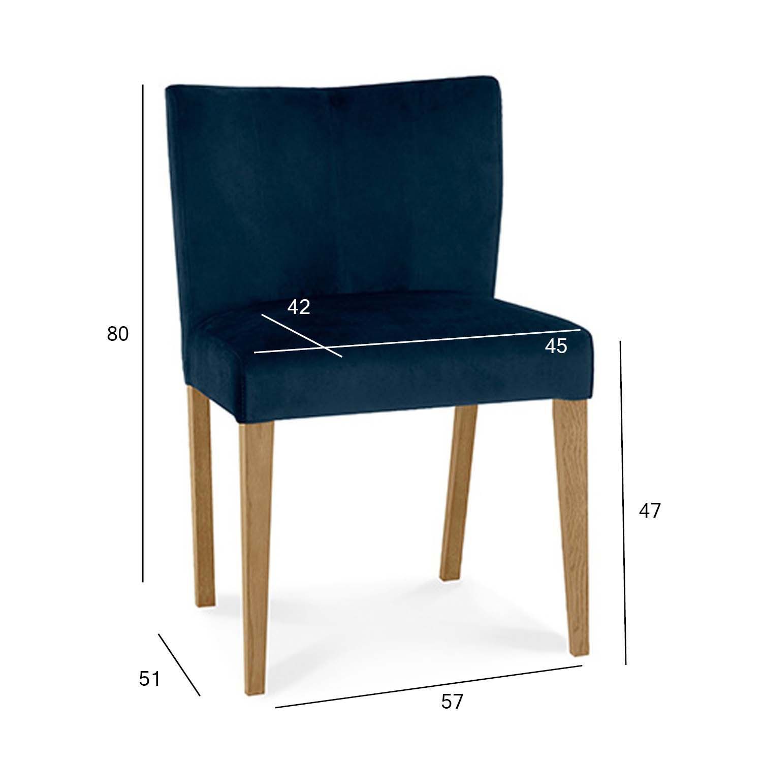 Tool TURIN 57x51xH80cm, tumesinine. Polsterdatud pehme iste ja seljatugi on kaetud polüester sametkangaga. Toolijalad on valmistatud täistammepuidust. Kaalupiirang 120kg.