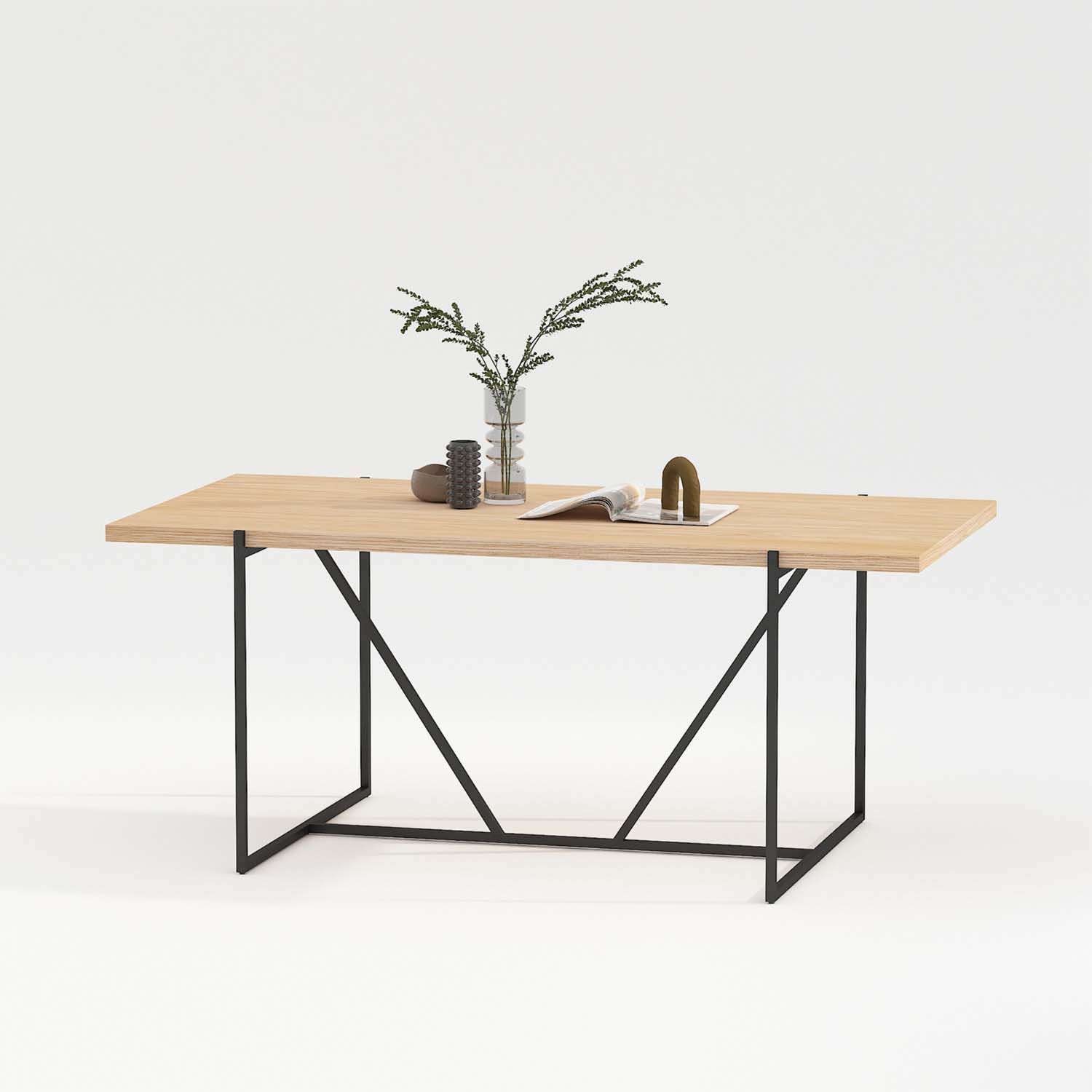 Söögilaud CINDY 180x90xH75cm, melamiin tamm. Lauplaat: hele tammedekooriga melamiinplaat. Laua jalad ja alusraam on valmistatud metallist ja viimistletud musta pulbervärviga.