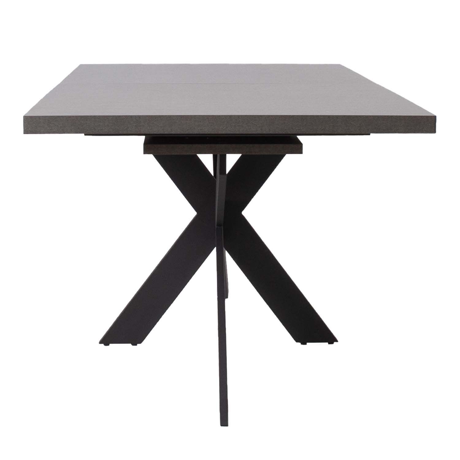 Söögilaud EDDY 160/200x90xH76cm, hall. Lauaplaat: hall melamiin. Laud on keskelt pikendatav. 40cm lai keskelt kokku klapitav pikendusosa on paigutatud lauaplaadi alla. Mustad metallist pulbervärvitud ristjalad.
