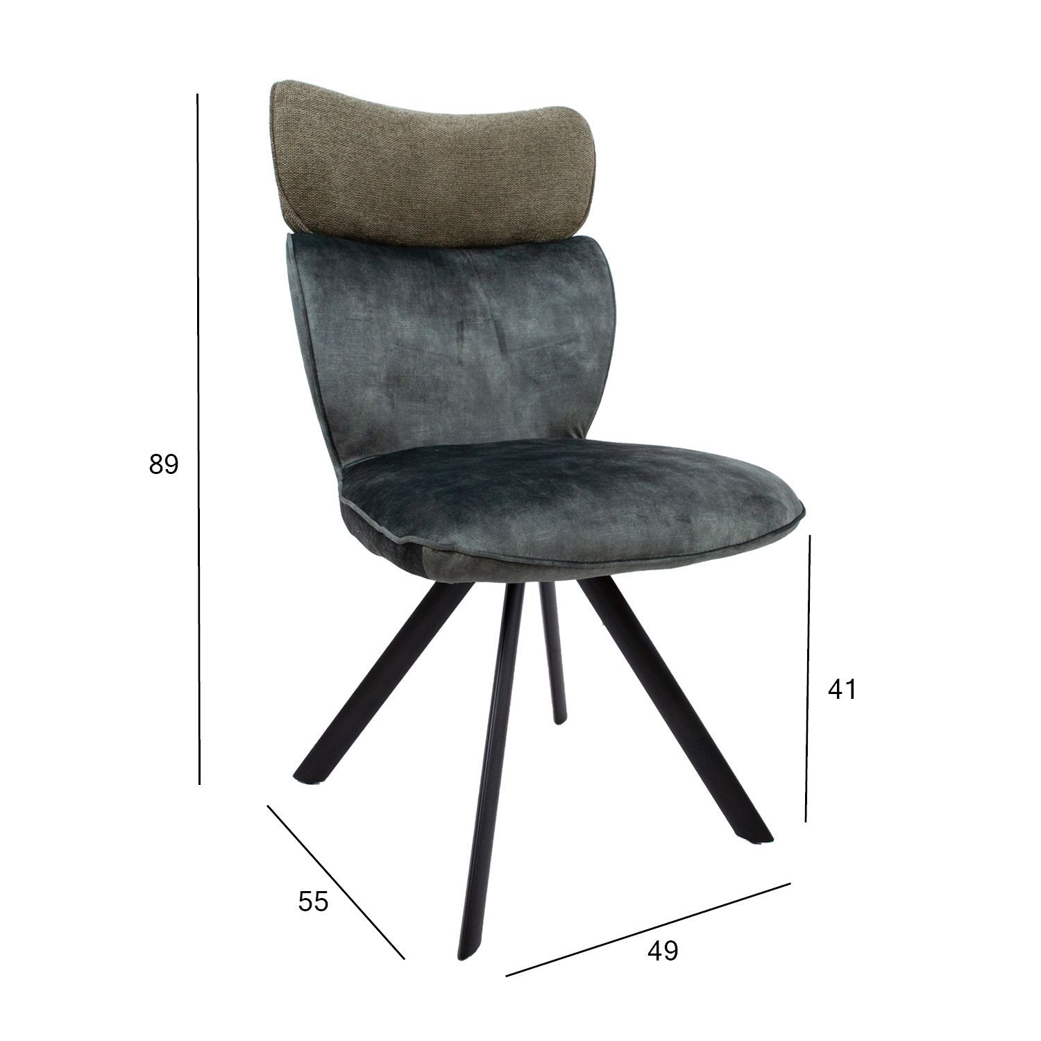 Söögilauakomplekt EDDY-2 8-tooliga. Komplekti kuulub pikendatav söögilaud ja 2+6 tooli. Laua mõõdud 160/220x90xH76cm. Laud on keskelt pikendatav. Lauaplaadi pooled liiguvad metallsiinidel, pikendusosa on paigutatud lauaplaadi alla. Lauaplaat: hall, kivi meenutav melamiinkattega MDF. Laual on mustad pulbervärvitud metalljalad. Tool EDDY käetugedega 63x55xH89cm, ilma käetugedeta 49x55xH89cm. Kattematerjal: roheline samet. Toolide istmekõrgus 48cm, istme laius 45/49cm, istme sügavus 42cm, seljatoe kõrgus 47cm, käetoe kõrgus maast 64cm. Toolide mugava vormiga iste on kergelt polsterdatud ja kaetud polüesterkangaga. Kasutatud on toon-toonis, kuid erineva pinna struktuuriga kangaid. Pulbervärvitud mustad metallist jalad. Kaalupiirang 120kg.