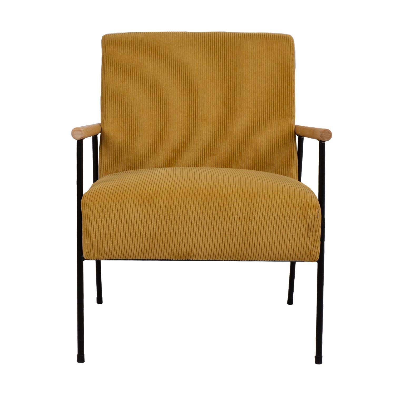 Must metallraam, käetugedel naturaalne puit. Iste on kaetud pehme ja trendika triibulise kangaga.