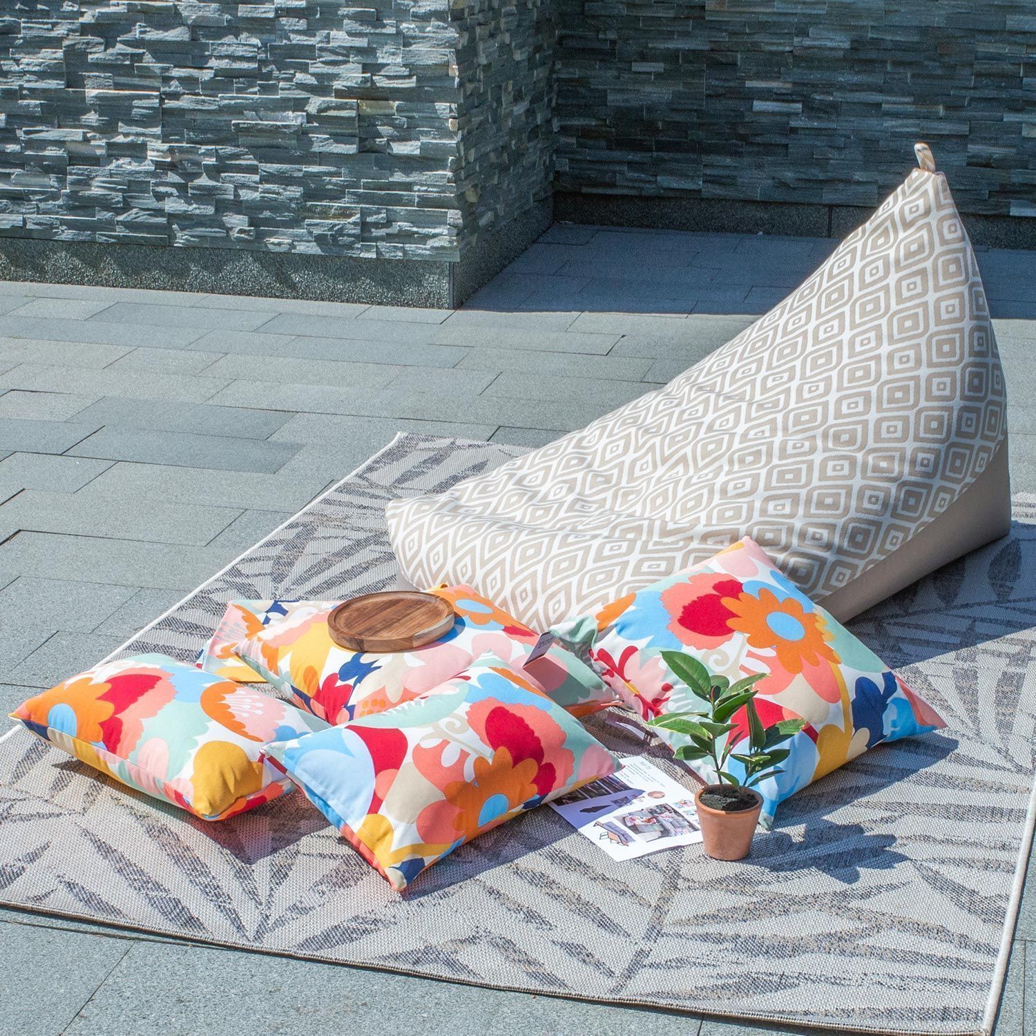 Kott tool ROMB 130x80x20/70cm, beežid rombid/beež. 100% polüester, kangas 350/825. Kott tool on täidetud spetsiaalsete graanulitega, mis kohanduvad istuja kehakujuga, pakkudes mõnusat tuge seljale. Graanulid on turvaliselt sisekotis ja vajadusel saab neid lihtsalt juurde lisada. Kott tool sobib hästi igasse interjööri, nii koju kui kontorisse, nii elu- kui lastetuppa. Kangas on vetthülgav, sobiv ka õues kasutamiseks.