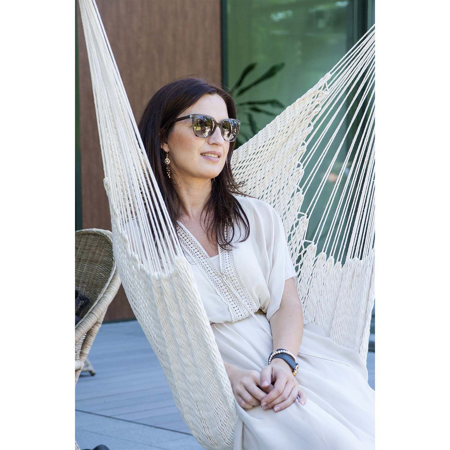 Ripptool CARINA, loodusvalge. Ripptooli iste on valmistatud puuvillasest nöörist. Puidust riputuspulga pikkus on 100x3,2cm. Maksimaalne kandevõime on 100kg. Ripptooli võib riputada tugeva puuoksa või tala külge. Samuti on võimalik kiige üles riputamiseks kasutada kandejalga. HOOLDUS: toote eluea pikendamiseks kaitske seda ilmastikuolude eest. Ärge jätke kiike pikemaks ajaks päikese või vihma kätte. Kanga ja nööride vastupidavus väheneb UV-kiirguse ja liigniiskuse mõjul ning värvid tuhmuvad. Võimalusel korjake ripptool peale kasutamist kokku ja hoiustage kuivas, hea ventilatsiooniga ruumis. Enne hoiule panekut laske kiigel täielikult kuivada. Ripptooli võib pesta käsitsi kuni 40-kraadises vees. Kasutage ainult leebeid pesuvahendeid.