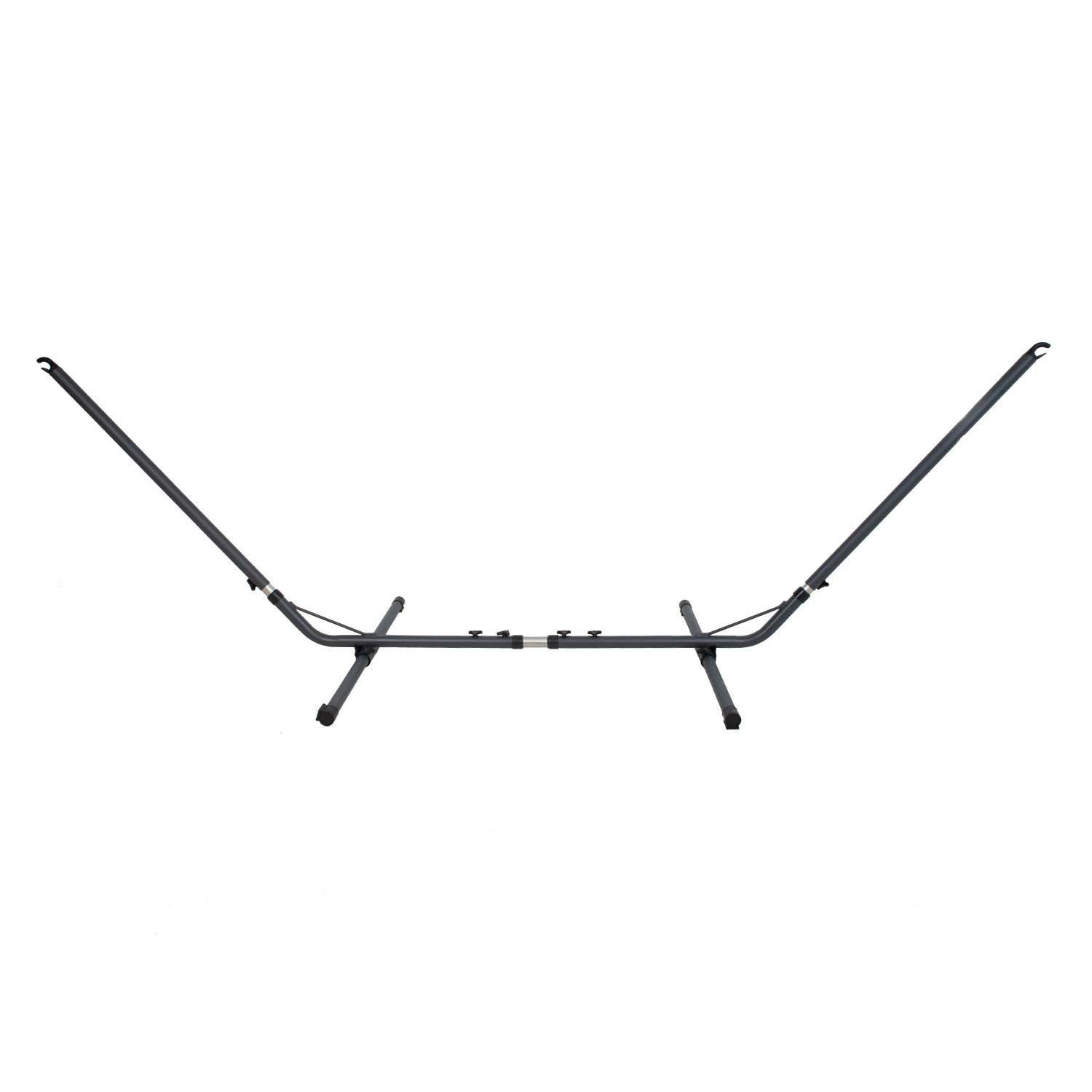 Alus rippkiigele 320/370x90xH120/140cm, tumehall. Reguleeritava kõrguse ja pikkusega universaalne alus sobib erinevatele rippkiikedele. Alus on valmistatud terasest ja viimistletud tumehalli pulbervärviga. Ühe tugijala kõrvale paigaldatud rataste abil on rippkiige alust lihtne teisalda. Kaalupiirang 120kg. Toote eluea pikendamiseks soovitame see suvehooaja lõppedes lahti monteerida ja hoiustada kuivas, hea ventilatsiooniga ruumis.