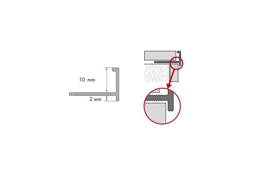 Cezar plaadiliist l-profiil alumiinium 10 x 18 x 2500 mm, anodeeritud läikiv hõbe.