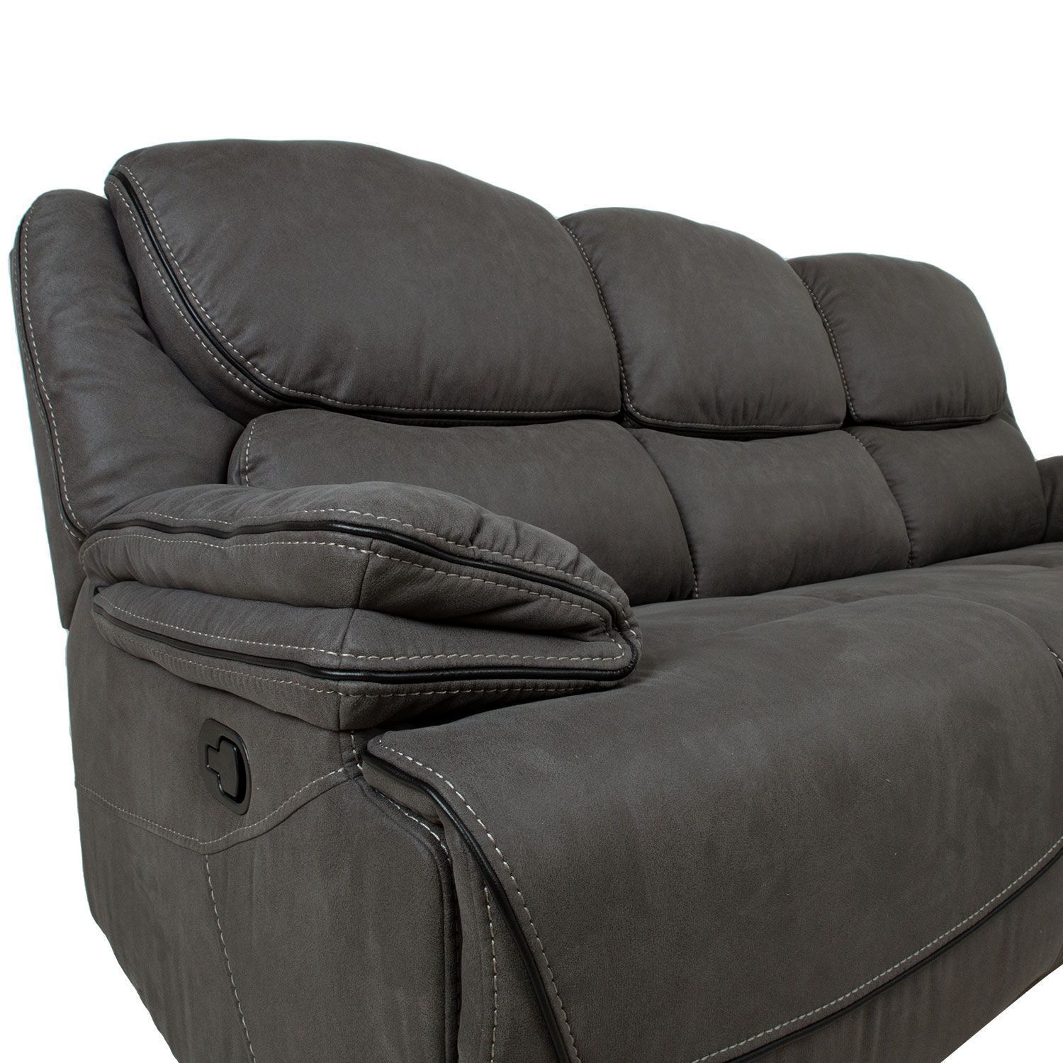 Diivan GORDY 3-kohaline manuaalne recliner 224x93xH106cm, hall. Recliner tüüpi diivani jalatoe asendit on võimalik muuta manuaalse mehhanismi abil. Jalatuge üles tõstes liigub seljatugi sujuvalt kaasa. Jalatoe tõstmiseks tõmmake tooli paremal välisküljel asuv kang üles. Surudes jalatuge alla fikseerub see automaatselt algasendisse. Keskmine iste ei ole reguleeritav. Kattematerjal: kunstnahka meenutav pehme polüesterkangas. Karkass ja vedrustus: vineer, puit, metall. Pocket vedrud. Polsterdus: polüuretaanvaht 20-28kg/m³. Diivani üldmõõdud on 224x93xH106cm. Istme laius 167cm, istme sügavus 54cm, istme kõrgus 49cm. Seljatoe kõrgus 69cm. Käetoe kõrgus maast 64cm.
