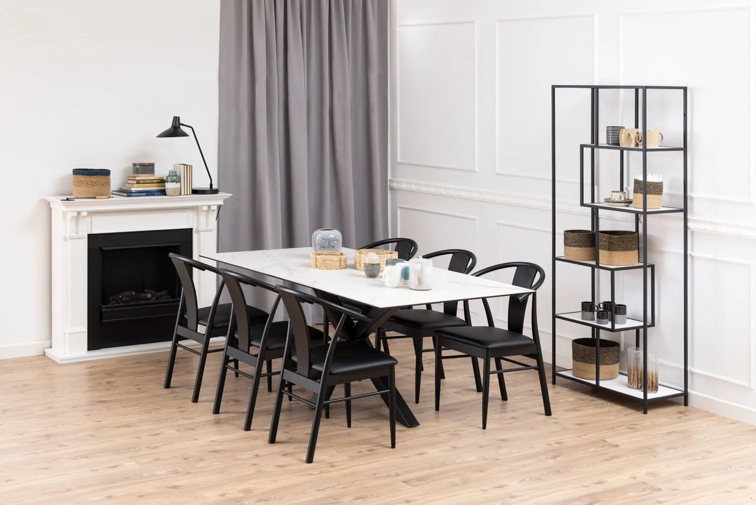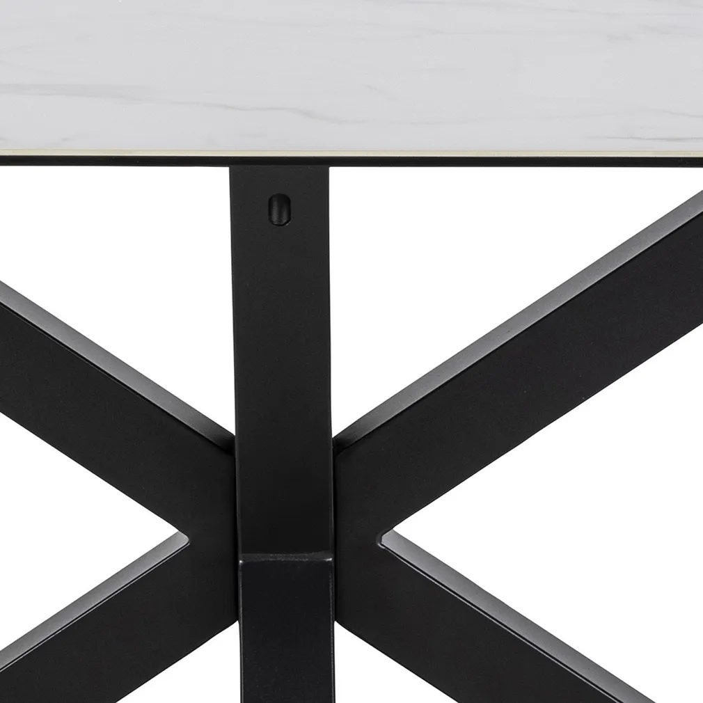 Maitsekas söögilaud pakub piisavalt pinda meeldivaks einestamiseks. Marmorist välimusega laual on kaasaegne ilme ja seda on lihtne hooldada. Kuumus- ja kriimustuskindel keraamiline lauaplaat ja skulptuurne ristalus. Sellised omadused muudavad laua ideaalseks lisanduseks igasse koju. HOOLDUS: Plekkide tekkel pühkige pind puhtaks tugevasti väänatud kiudlapiga või paberrätikuga. Pinnakahjustuste vältimiseks kasutage klaasialuseid ja lauamatte. Rooste vältimiseks pühkige pind lapiga kuivaks. Ärge hõõruge pinda kõvade esemetega