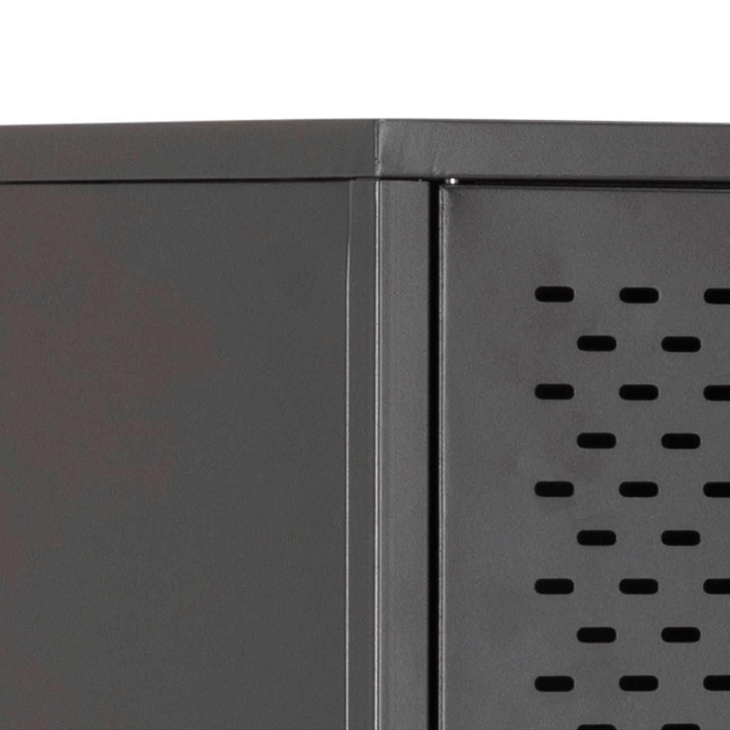 Metallist kapp lisab interjööri tööstuslikku hõngu. Pulbervärvitud metall mõjub kaasaegselt ja perforeeritud uksed täiendavad tööstuslikku ilmet. Kapp on hea viis interjööri värskendamiseks ja hoiuruumi tekitamiseks. Materjal: metall, pulbervärvitud, mattmust. Mõõdud on 80x40xH160cm.