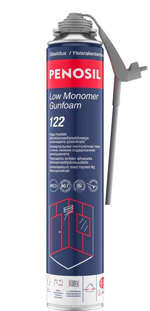 Penosil Low Monomer Gunfoam 122 on ühekomponentne polüuretaan püstolivaht väga madala diisotsüanaadi monomeeri sisaldusega (<0,1%) ja spetsiaalse EasyGun aplikaatoriga kitsaste, sügavate ja raskesti ligipääsetavate vuukide jaoks. Nakkub hästi enamike tavaliste ehitusmaterjalidega nagu puit, betoon, kivi, krohv, metall, PVC ja polüstüreen.