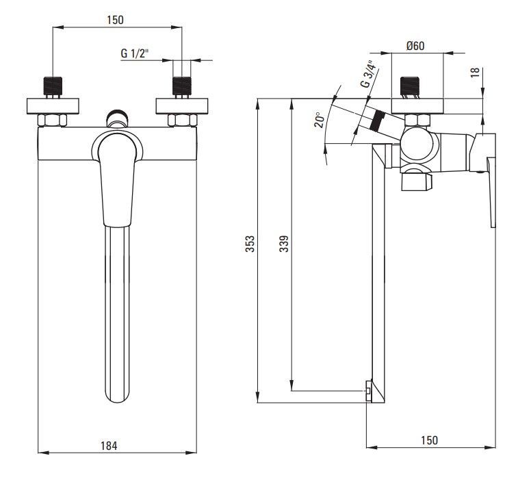 • Segisti tüüp: ühe kangiga segisti