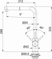 Franke Sirius köögisegisti, millel on väljatõmmatav otsik ja 360° pööratav L-tila. Segistil on küljehoovaga juhtimine. Komplekt sisaldab 400 mm pikkuseid veevarustusvoolikuid 3/8" ühendusega. Kroomitud messingist.