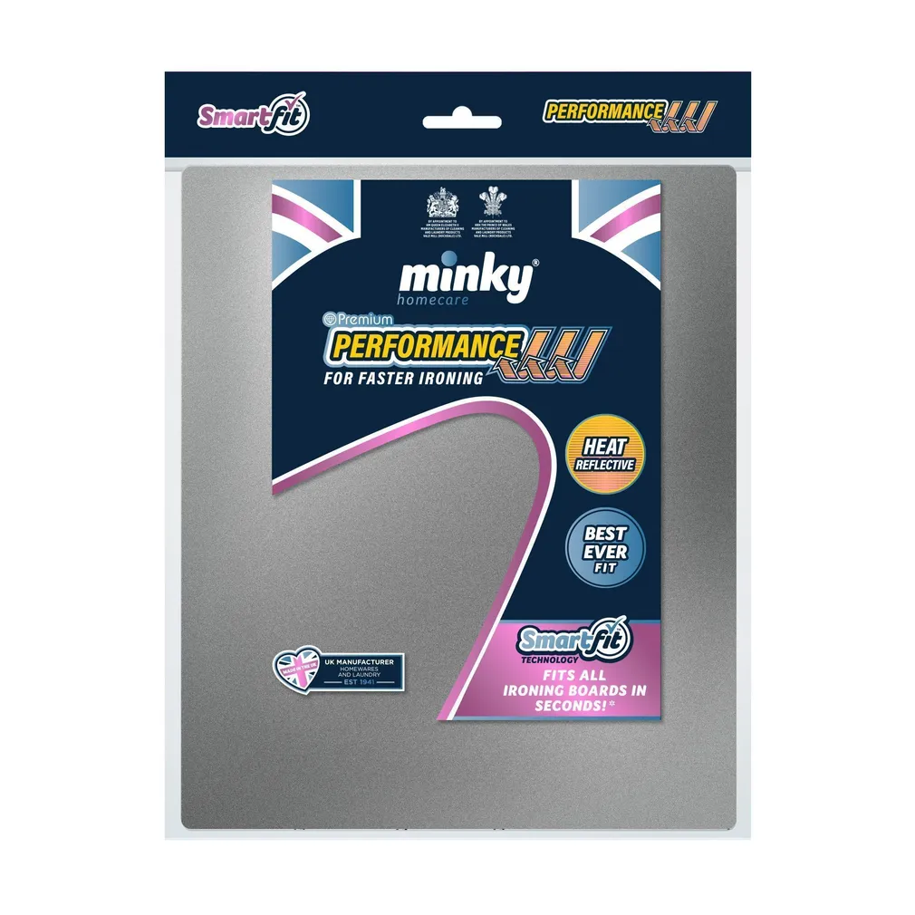 Minky Smart Fit Performance triikimislaua kate on superpehme metallikkattega, mis peegeldab soojust tagasi läbi kanga, aidates tõhusamalt ja kiiremini kortse eemaldada. Kate sobib Minky triikimislaudadele suurustes kuni 122 x 38 cm ja 125 x 45 cm. Elastne disain kinnitub kindlalt laua ümber ning sisaldab spetsiaalset nina taskut, mis muudab paigaldamise lihtsaks. Kuumust peegeldav metallpind ja auruavad tagavad kiirema ja tõhusama triikimise. Kate on vastupidav ja pikaealine, valmistatud 100% puuvillast, mille paks vahtkummikiht tagab ühtlase ja siledama triikimispinna.