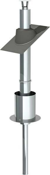 Tarnekomplekt: Isoleerimata ühendustoru 1 m, mida on võimalik lühendada (minimaalne lubatud pikkus 0,2 m), isoleeritud osa (1,5 m) tarnitakse alati kahes osas (1 m ja 0,5 m), mis on ühendatud torude vahel. siderõngas. tk.), paigaldusjuhend, täiendav väljavool allavoolu, on ka eraldi testitud ja väga ohutu põrandatevaheline ülekate Lisasoojustus Pluss, kui kasutatakse paksu põrandavahelist isolatsioonikihti. Tuleb ühes karbis ja isoleeritud korstnat saab eraldi müüdavate korstnaosadega pikendada kuni 5 m.