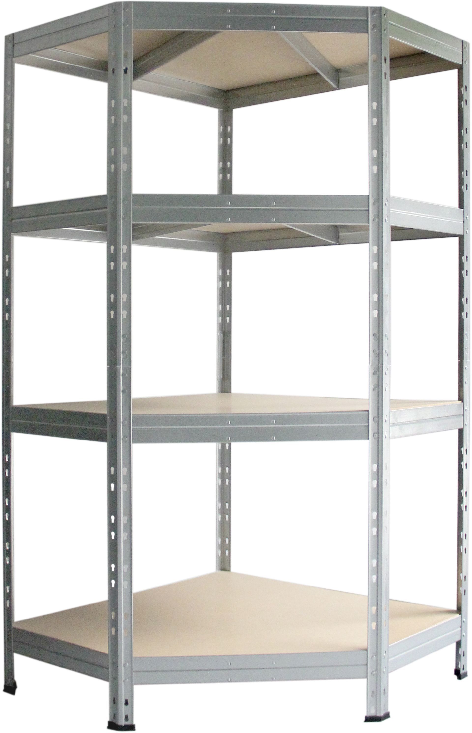 AR Shelving Rivet Corner 180 x 90 x 90 x 45 cm laoriiul Garage seeriast. See on loodud maksimaalselt ära kasutama nurgaalasid sinu garaažis, panipaigas või väikeses laos. See mitmekülgne laoriiul on kiire ja lihtne kokku panna ilma kruvideta, sellel on reguleeritavad HDF-puidust riiulid ja tsingitud terasraam, mis tagab nii funktsionaalsuse kui ka stiili. Suure kandevõimega – 250 kg riiuli kohta – sobib see ideaalselt erinevate esemete hoiustamiseks. Kohanda oma hoiuruumi vastavalt vajadustele reguleeritavate riiulite abil. Täieliku ja optimeeritud hoiulahenduse saamiseks kombineeri seda teiste Garage Series’i toodetega, millel kõigil on 45 cm sügavus, tagades nende omavahelise sobivuse.