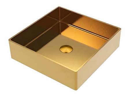 Roostevabast terasest valamu, nano-PVD-kattega. Pinnaviimistlus kuldsa värvi teras. Kausi mõõtmed on 400 x 400 x 105 mm. Valamut saab paigaldada töötasapinna peale. Komplektis on põhjaklapp.
