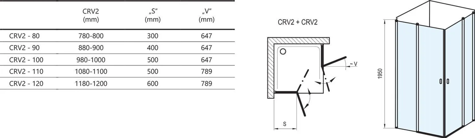 DUŠINURK RAVAK CRV2-120, 120X195CM, ALUMIINIUM, LÄBIPAISTEV
